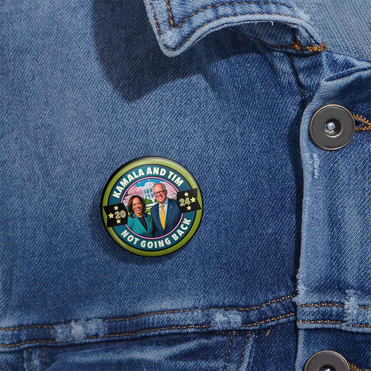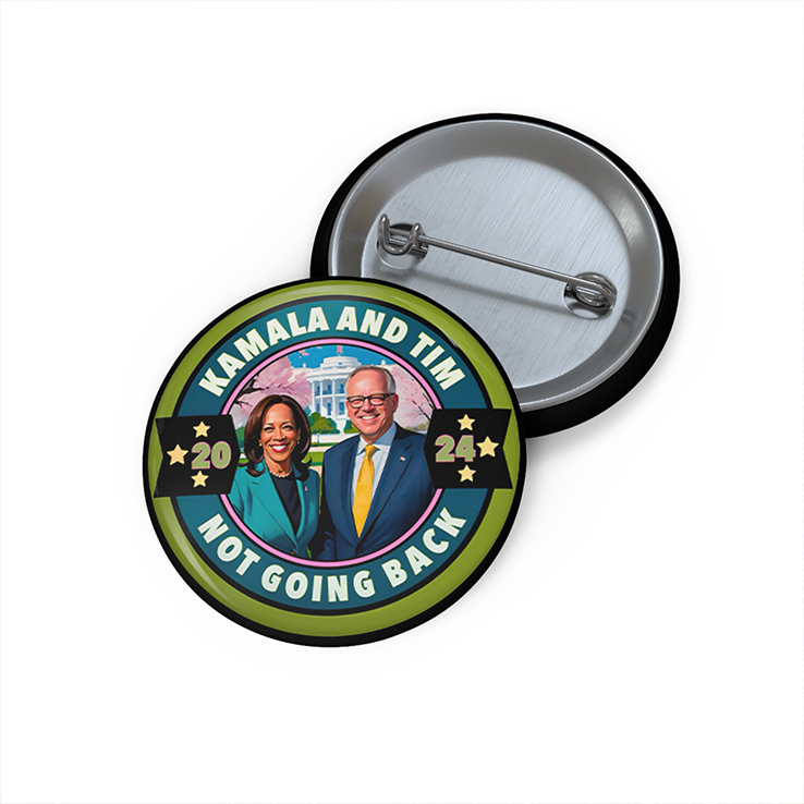 Have a look at the detailed information about the Kamala Harris Tim Walz Not Going Back Custom Pin Button below!