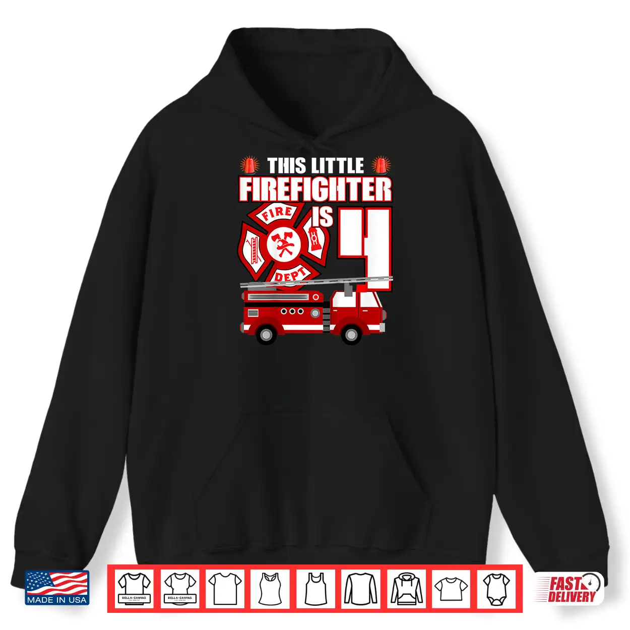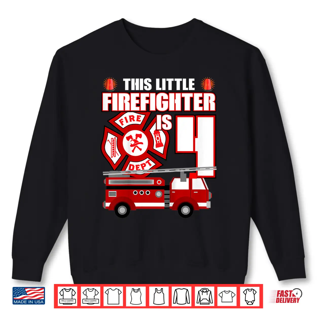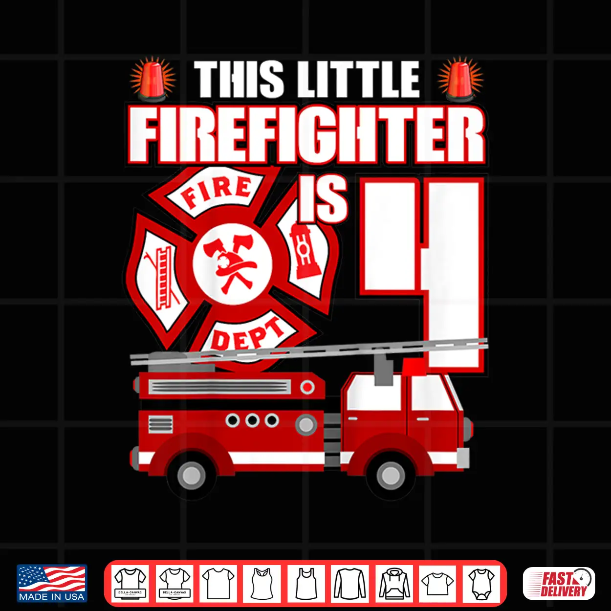 Kids 4 Year Old Firefighter Birthday Fire Truck 4Th Gift Shirt