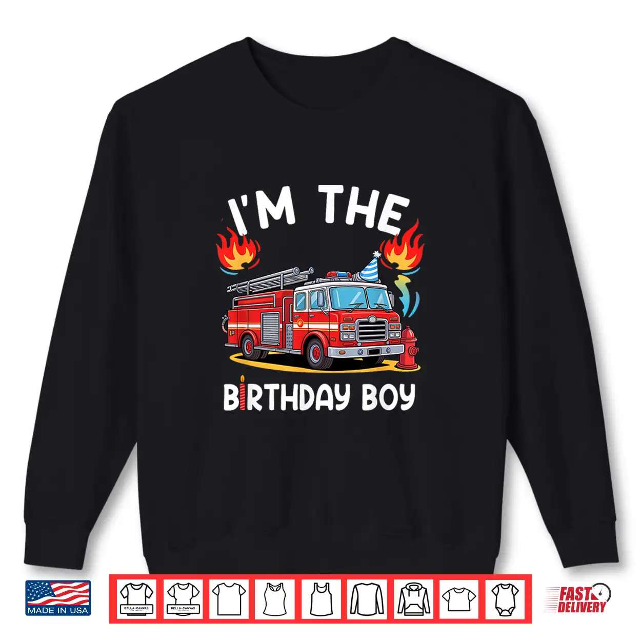 Kids Birthday Boy Fire Truck Firefighter Bday Party Theme Shirt