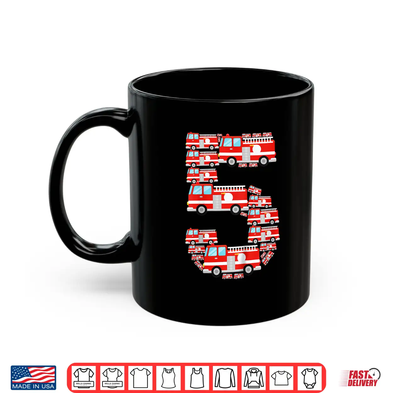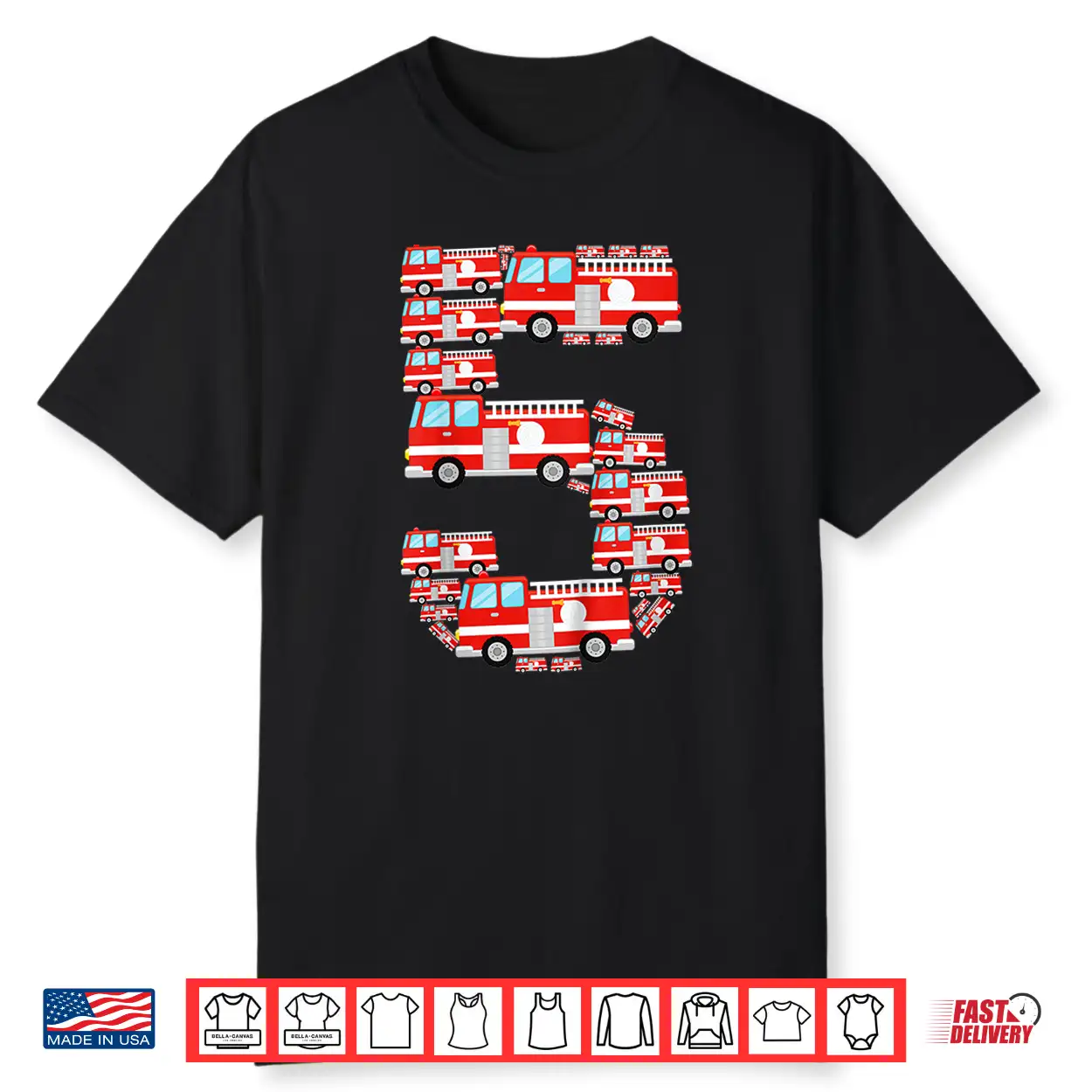 Kids Fire Truck 5Th Birthday Boy 5 Year Old Firefighter Shirt