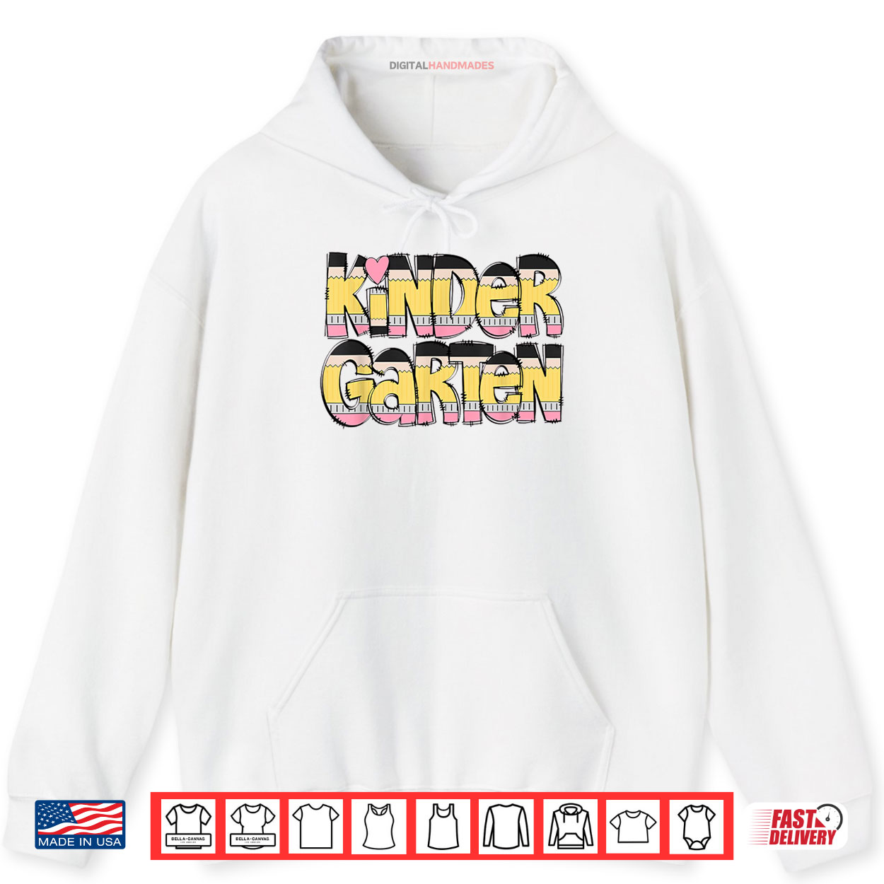 Kindergarten Pencil First Day Of School Teacher Shirt, Pencil First Day Of Kindergarten Tee Top Shirt, Teacher Back To School Supplies Wear Fun Shirt, Cute Kindergarten Educator Gift Style Proud Shirt, Learning To Write With Pencils Fan Lady Shirt, Awesome Kinder Teacher Apparel Chic Sweet Shirt, My First Day Teaching Kinder Cute Love Shirt, School Year Begins With A Pencil Heart Ride Shirt, Ready For Kindergarten Class Hip Hop Rule Shirt, Sharp Minds Start Here Lady Proud Fan Shirt
