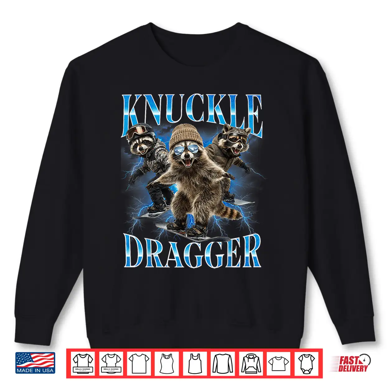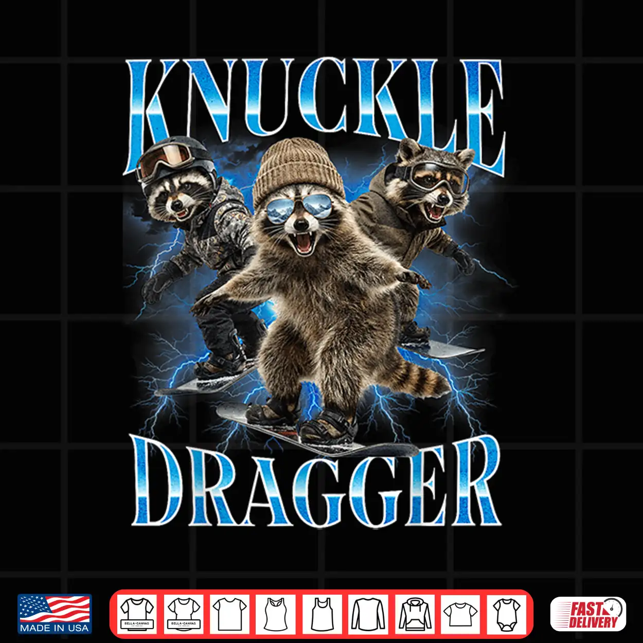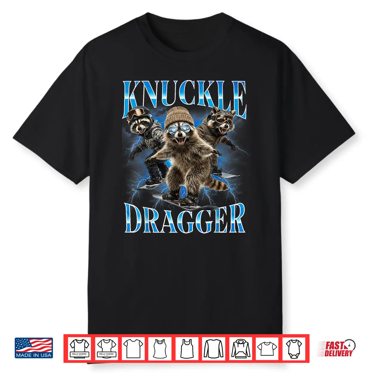 Knuckle Dragger Raccoon Snowboard Funny Winter Sports Slang Shirt