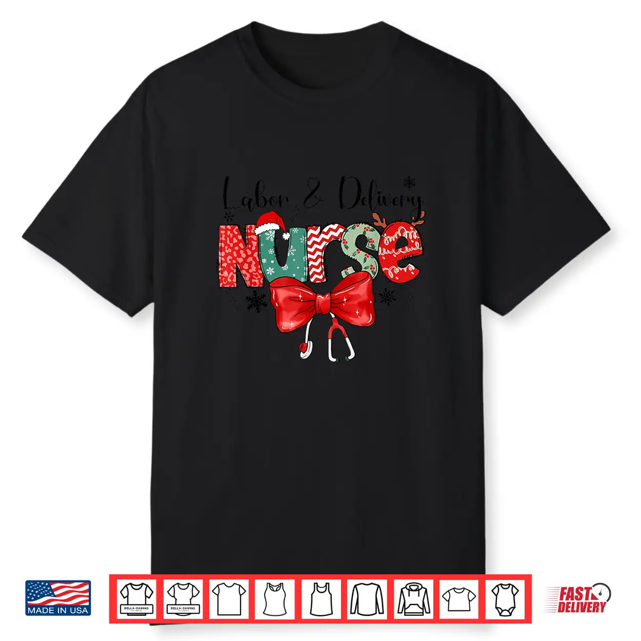 Labor & Delivery Nurse Stethoscope & Bow L&D Nurse Christmas Shirt