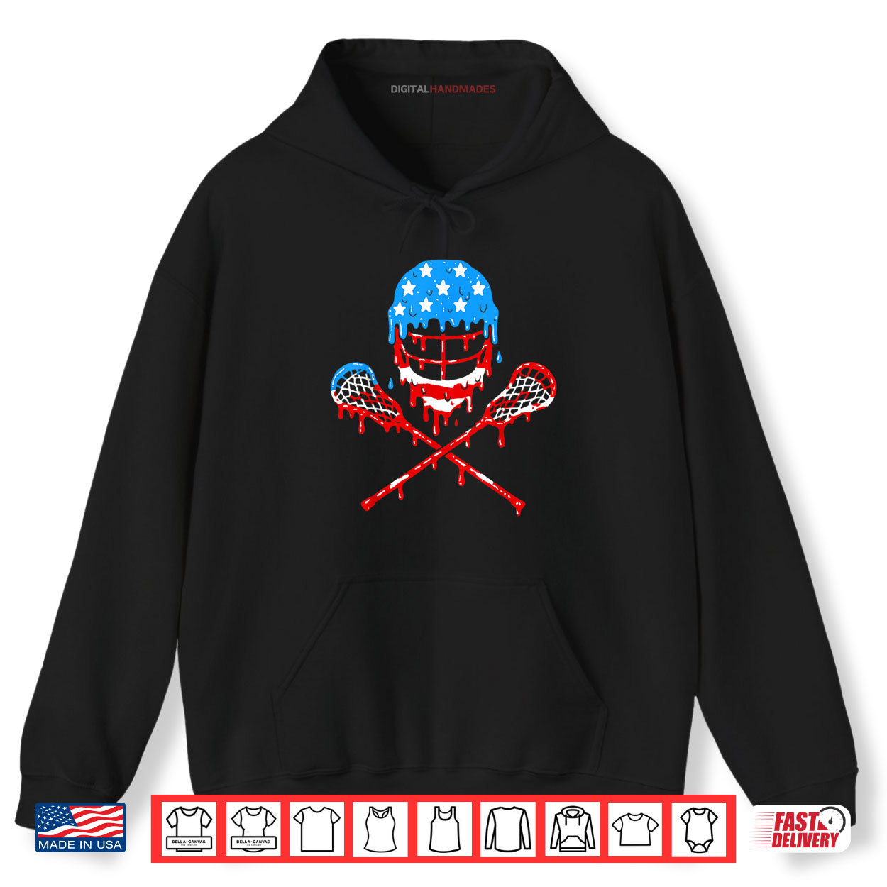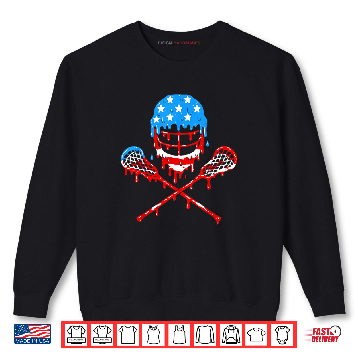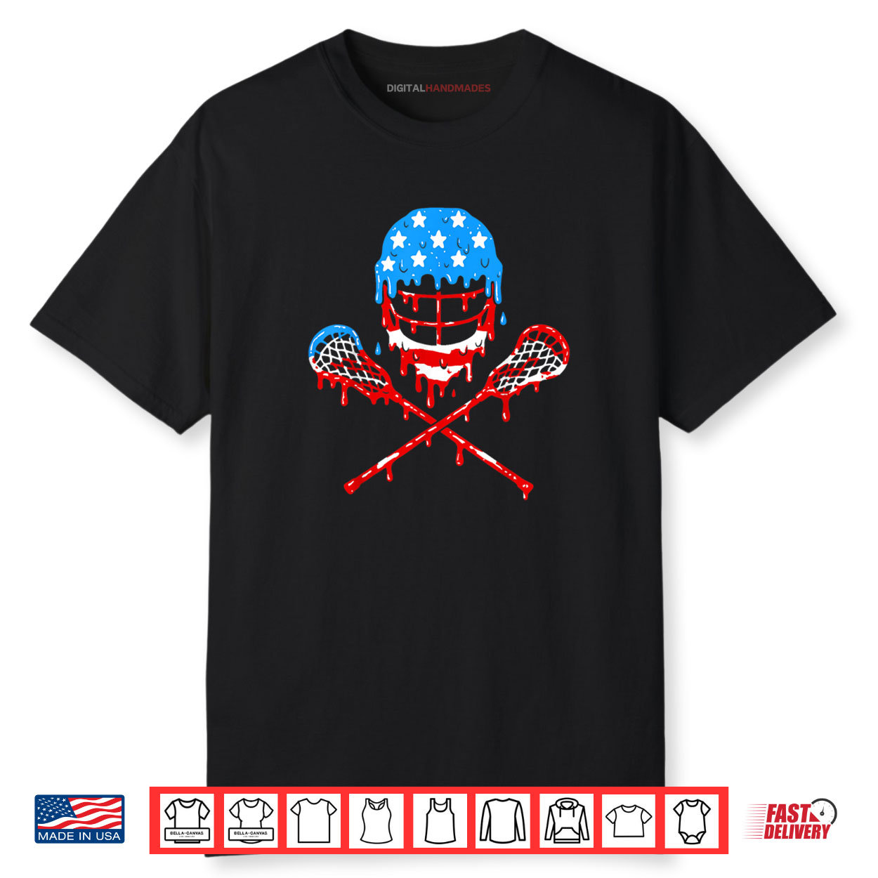 Lacrosse Ice Cream Helmet Lax Sticks Patriotic American Flag Shirt