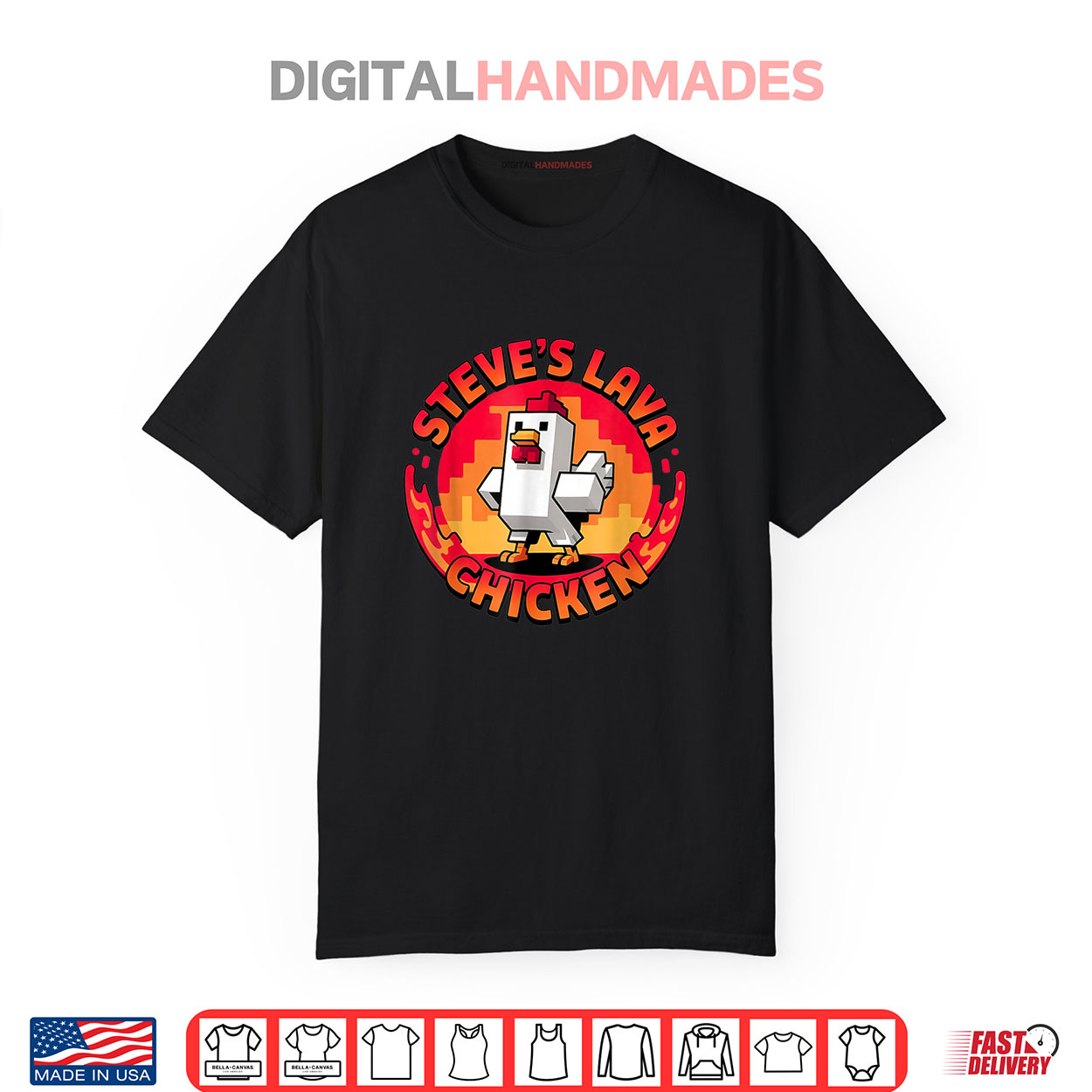 lava chicken miners shirt, pixel gaming meme tee, steve game boys kids shirt, funny chicken in lava shirt, minecraft parody shirt, gamer humor tee, blocky art style shirt, lava death pixel joke, gaming culture shirt, minecraft chicken meme