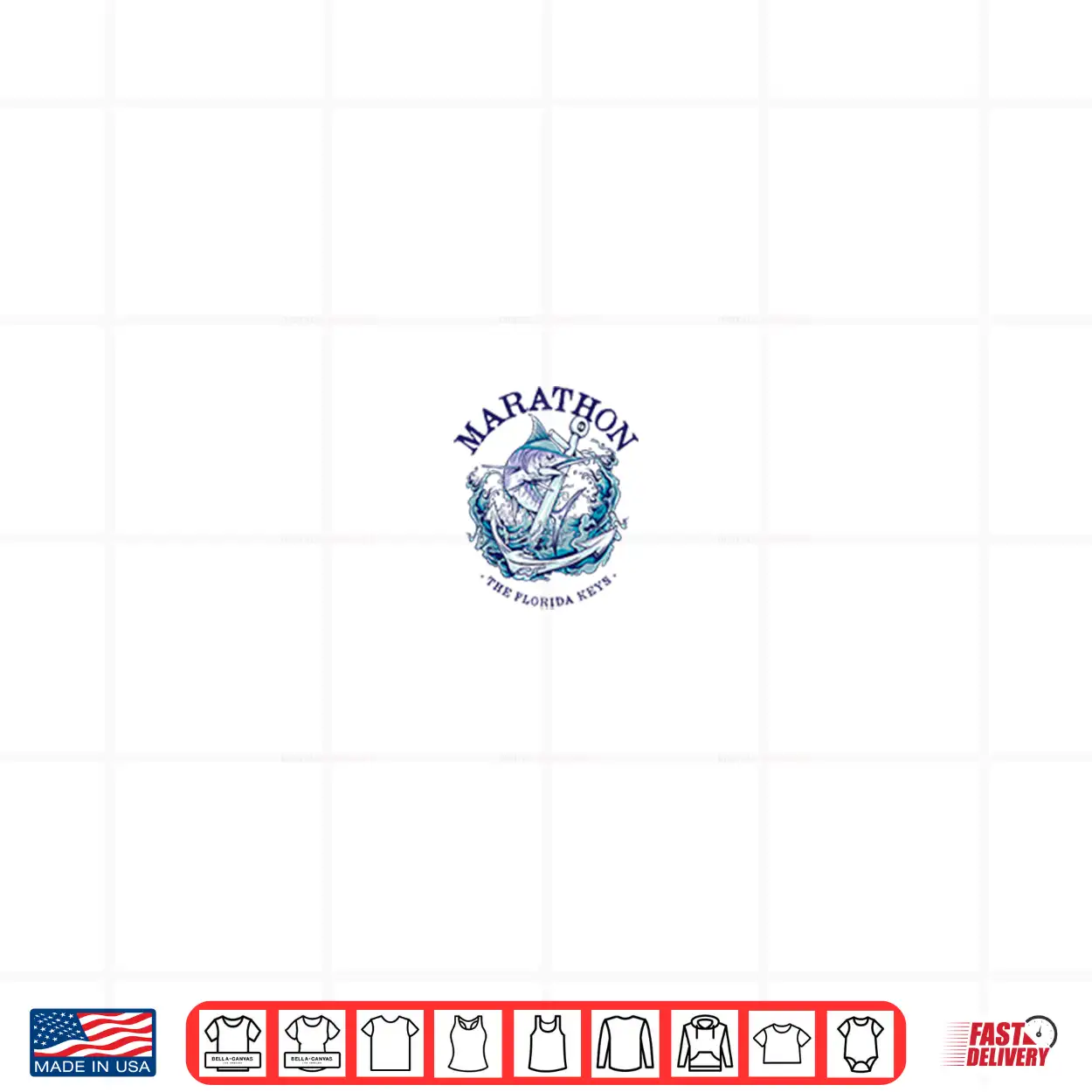 Left Chest And Back Print Marlin Marathon Florida Keys Shirt