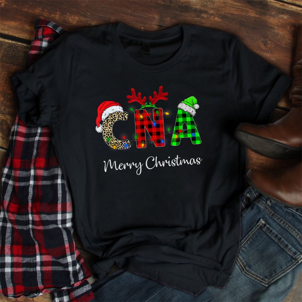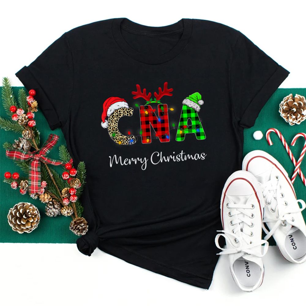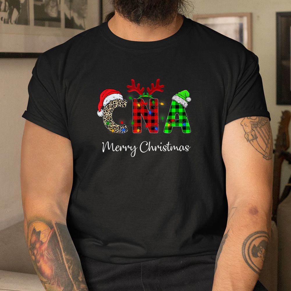 Leopard Red Plaid Cna Nursing Santa Hat Reindeer Christmas Shirt