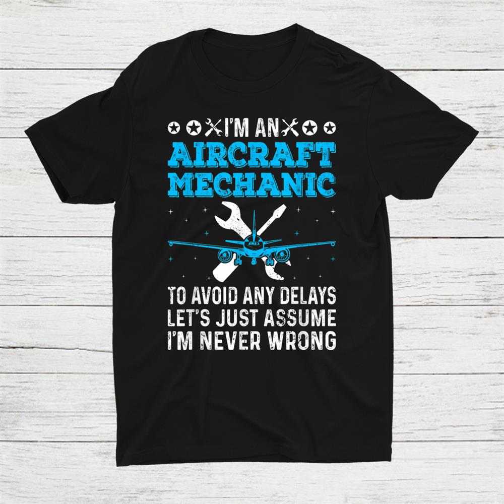 Let’s Assume I’m Never Wrong Funny Aircraft Mechanic Shirt