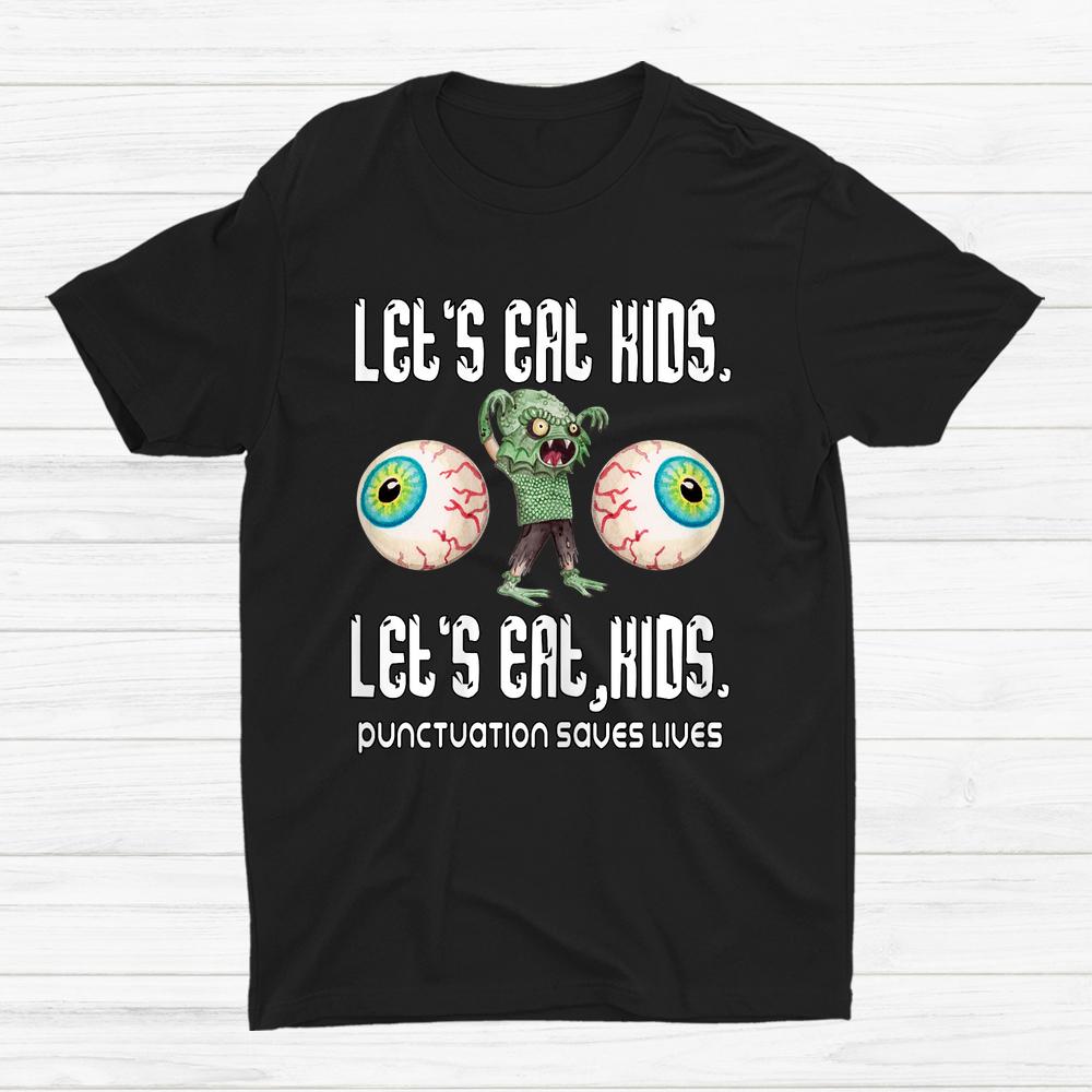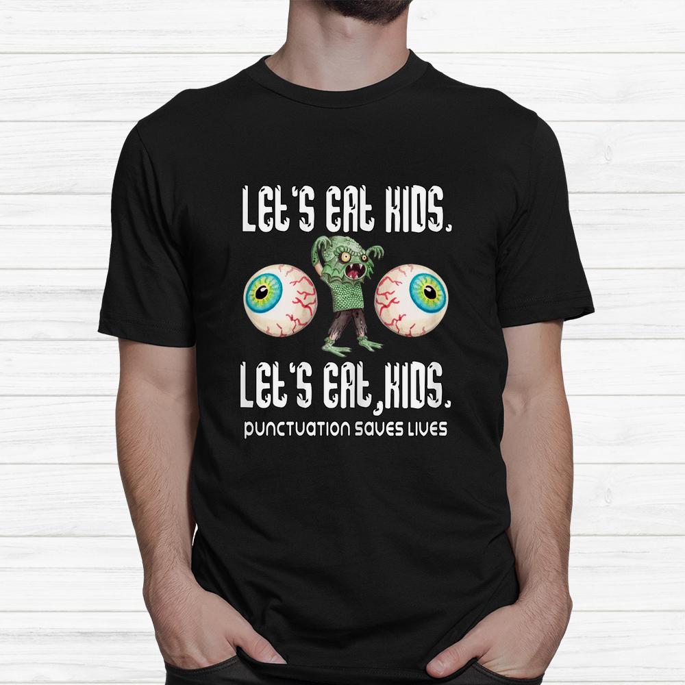 Lets Eat Kids Punctuation Saves Lives Grammar Halloween Shirt, hoodie, sweatshirt, long sleeve and ladies T-shirt