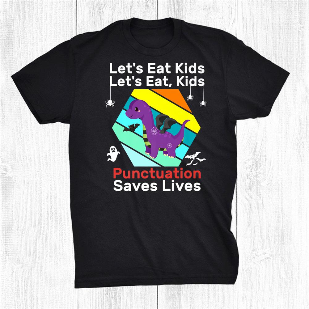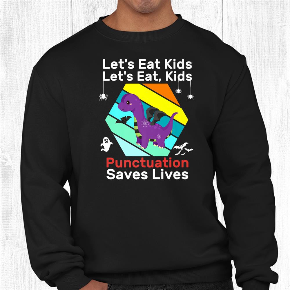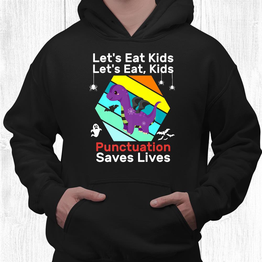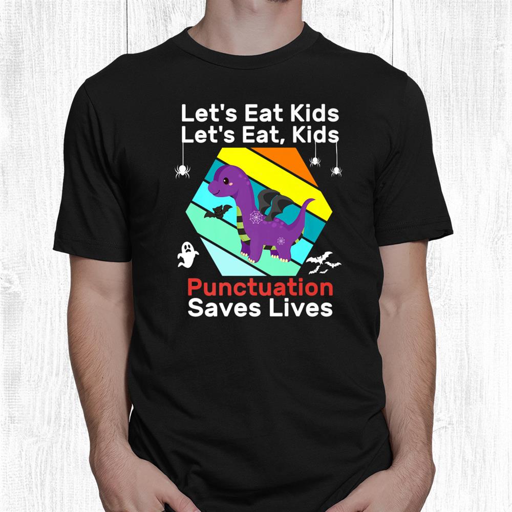 Let’s Eat Kids Punctuation Saves Lives Halloween Dino Shirt, hoodie, sweatshirt, long sleeve and ladies T-shirt