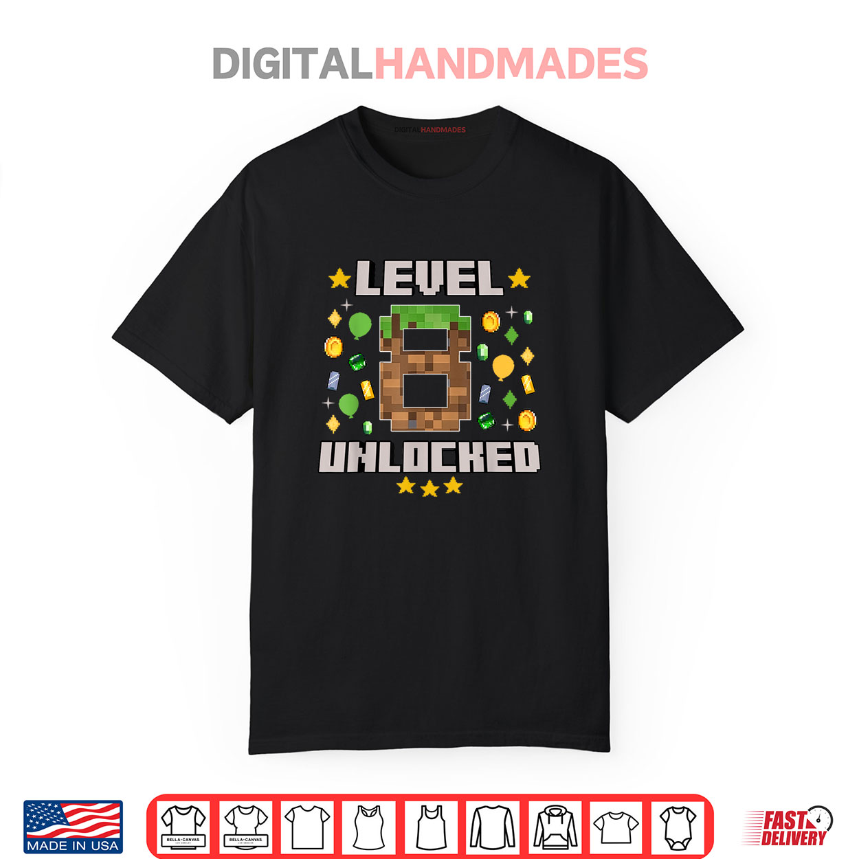Level 8 Unlocked 8th Birthday Gamer Pixel Video Game Party Shirt