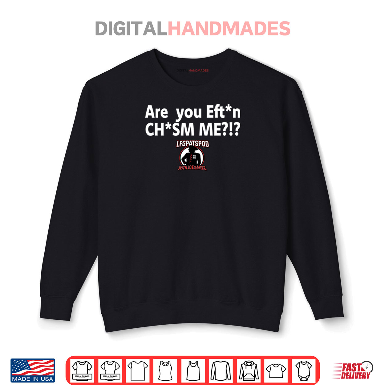 LFGPATSPOD With Joe & Mike Are You Effin’ Chasm Me Shirt, LFGPatsPod Patriots Podcast Merch Shirt, New England Patriots Fan Show Shirt, Joe And Mike Podcast Hosts Tee Shirt, Are You Effin Chasm Me Quote Shirt, Funny Football Talk Radio Parody Shirt, Patriots Nation Insider Joke Shirt, NFL Fan Community Apparel Gift Shirt, Sports Podcast Catchphrase Shirt, Effin Kidding Me Spoof Pats Shirt