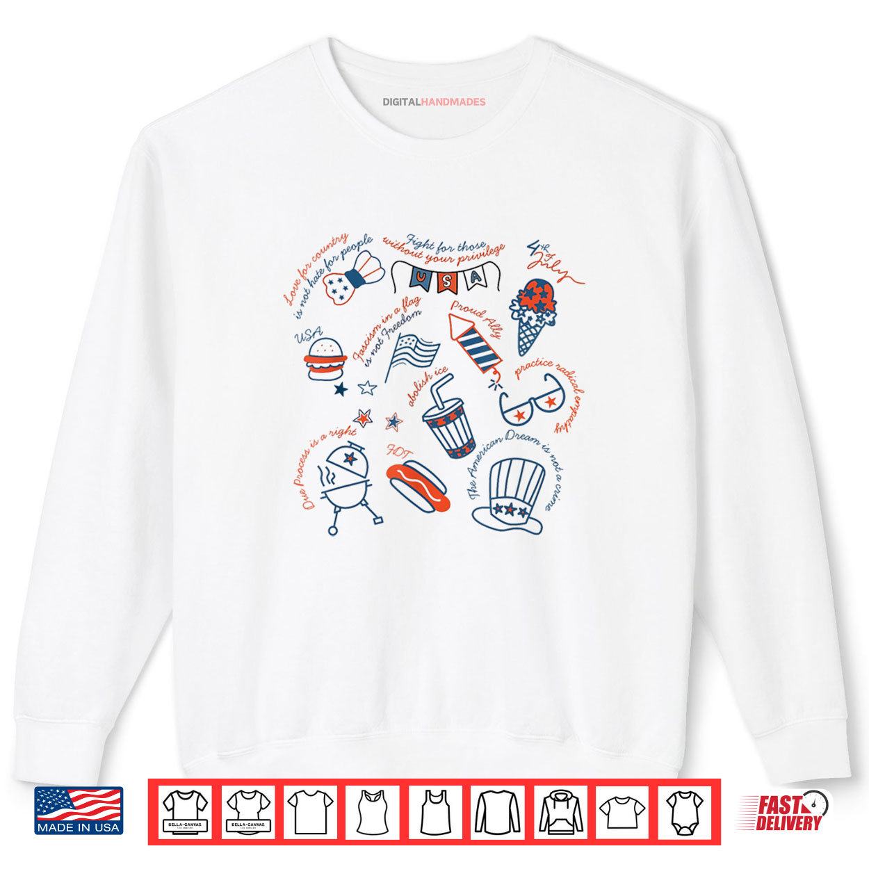 Liberal 4th Of July Doodle Hot Dog Patriotic Feminist Shirt