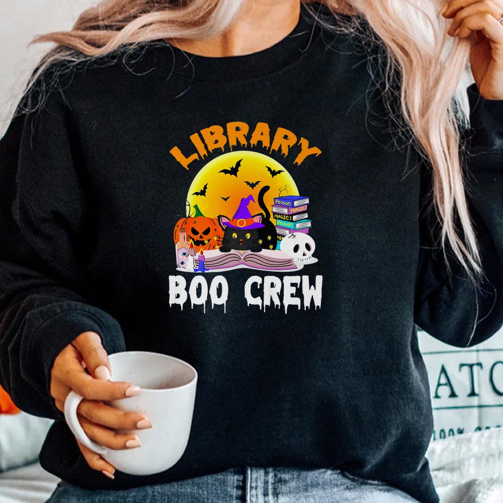 Library Boo Crew School Librarian Halloween Library Book Shirt, hoodie, sweatshirt, long sleeve and ladies T-shirt