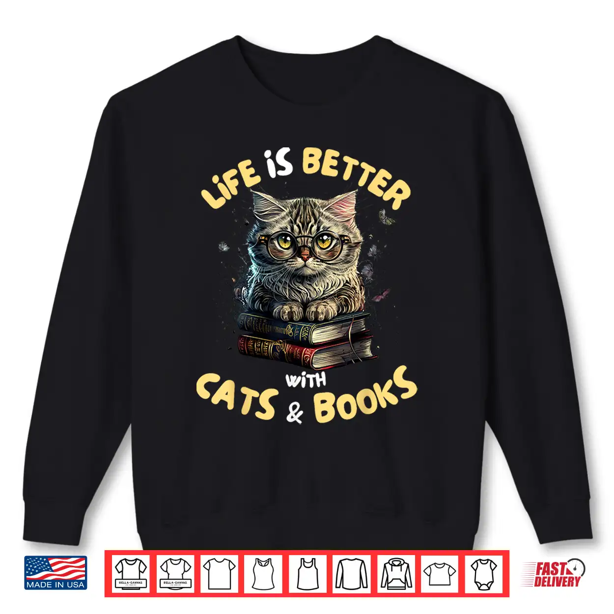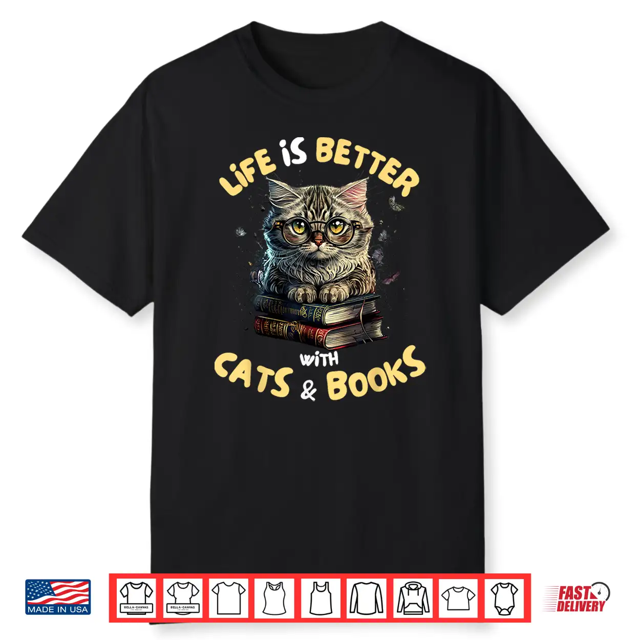 Life Is Better With Cats And Books Librarians Bibliophiles Shirt