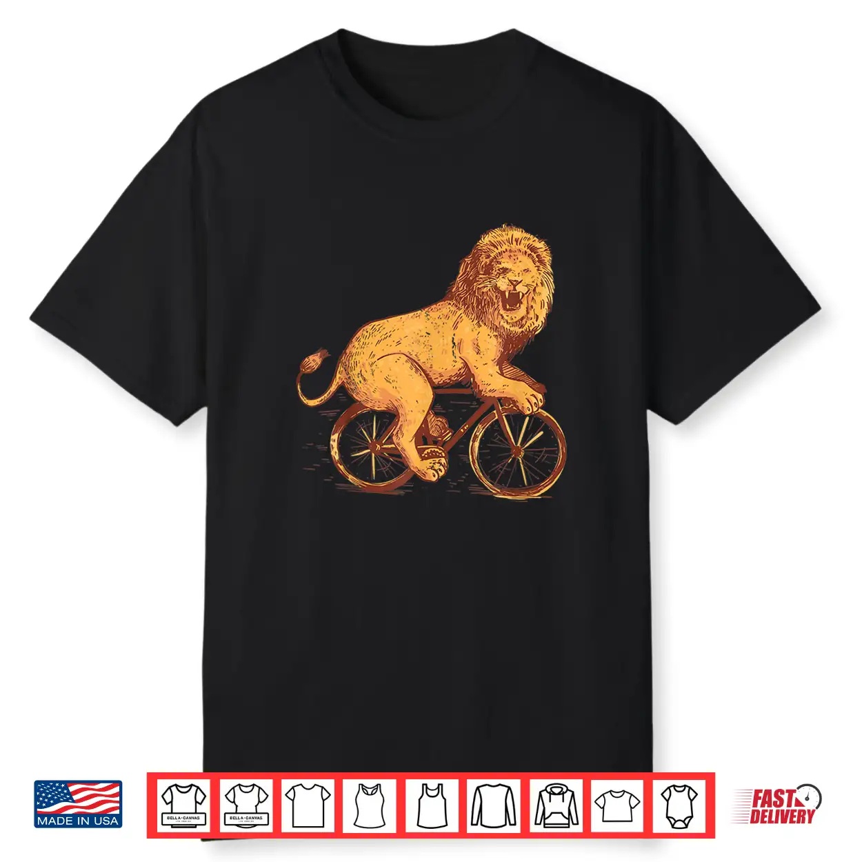 Lion On Bicycle Road Bike Animal Funny Cycling Cyclist Gift Shirt