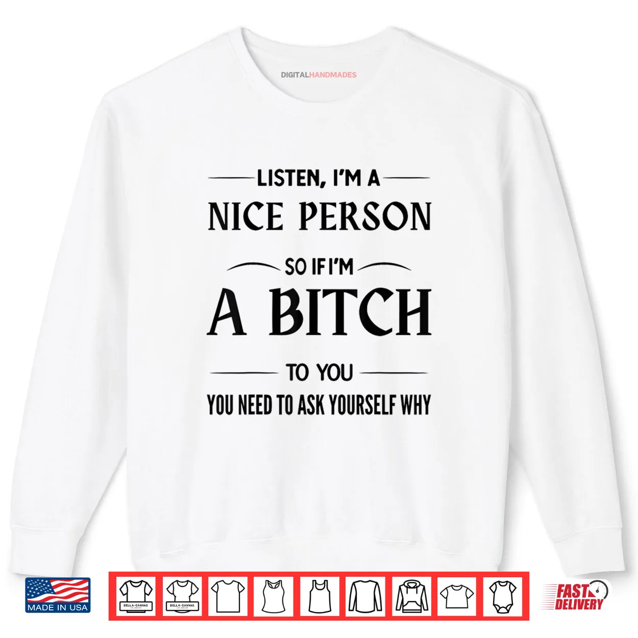 Listen I’m A Nice Person So If I’m A Bitch to You You Need Shirt, I’m A Nice Person, If I’m A Bitch to You, Funny, Witty, Sarcastic, Quote, Attitude