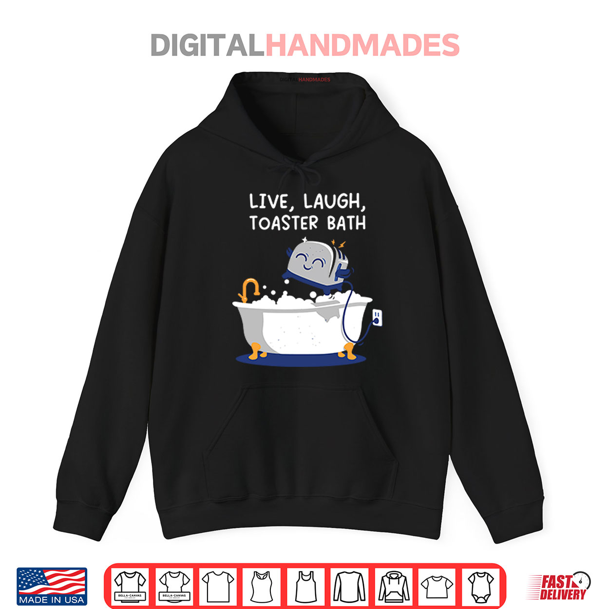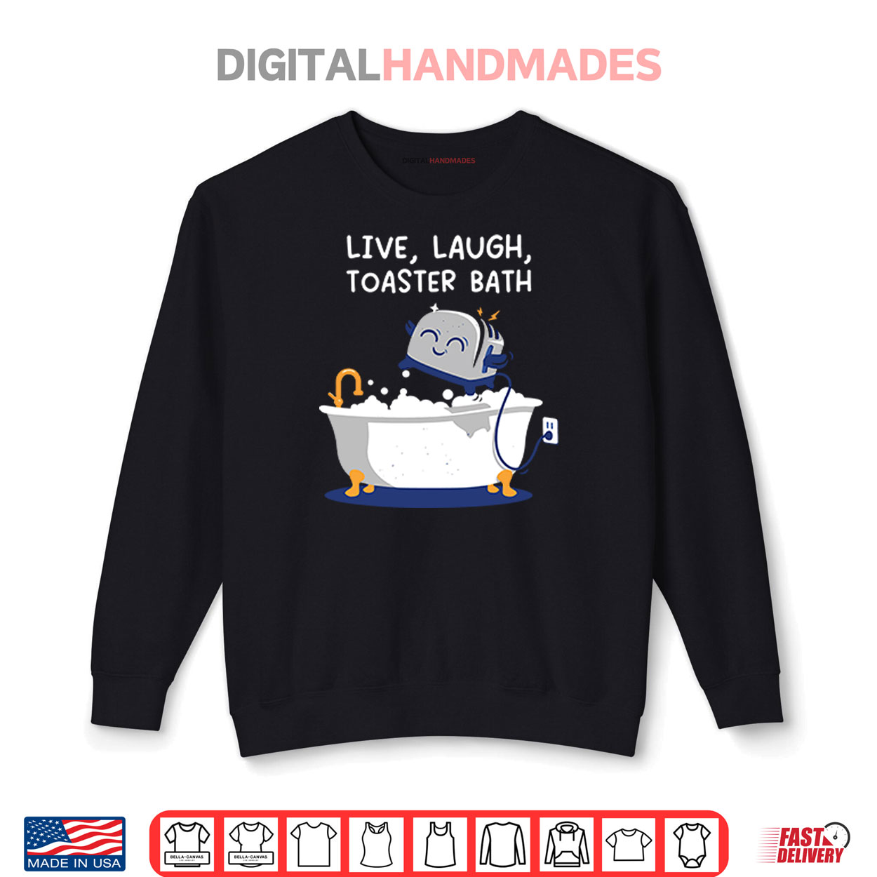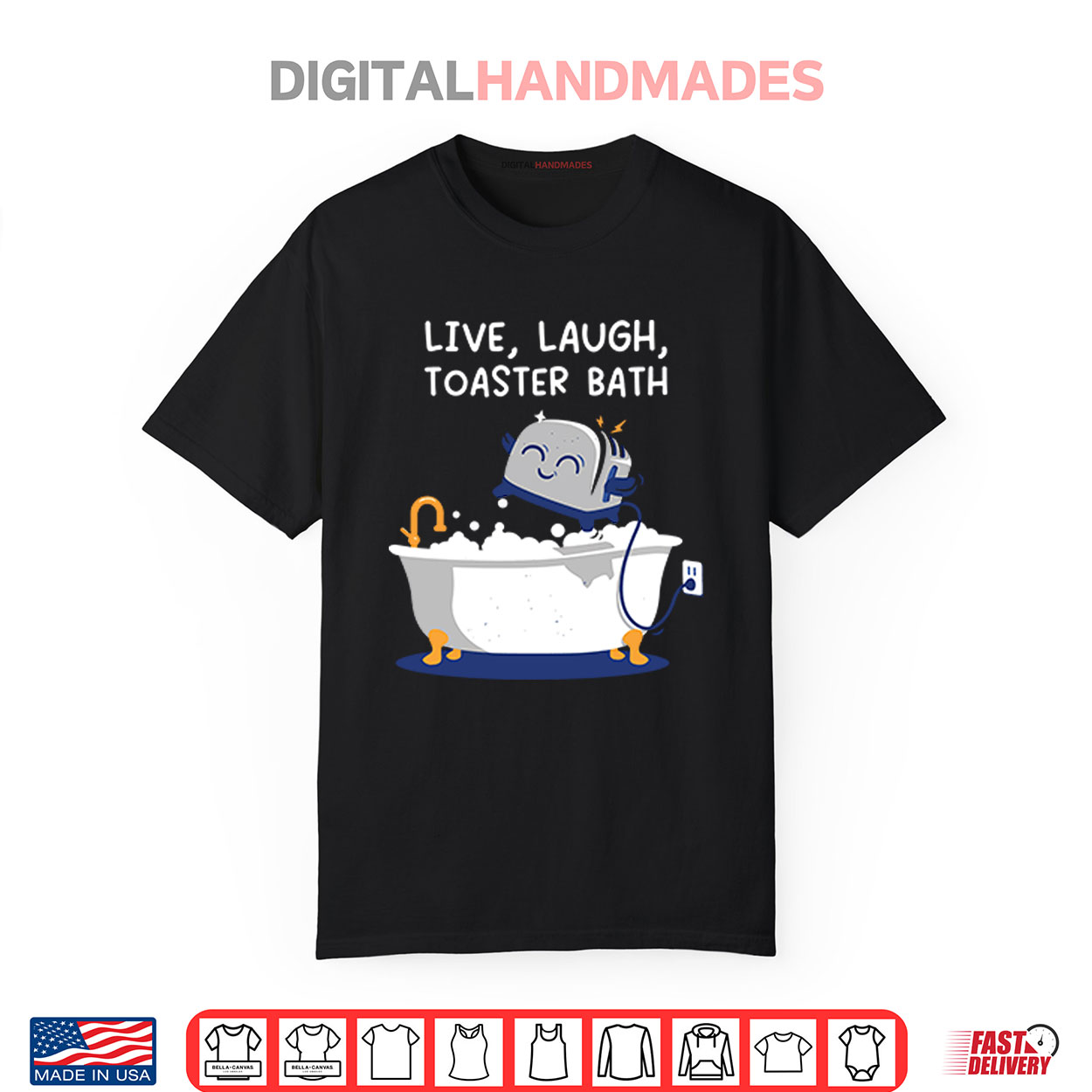 live laugh toaster bath shirt, dark humor meme tee, mental health joke shirt, edgy depression humor, inappropriate sarcasm shirt, morbid comedy apparel, dark internet meme tee, anti-inspiration quote shirt, controversial funny shirt, awkward statement design