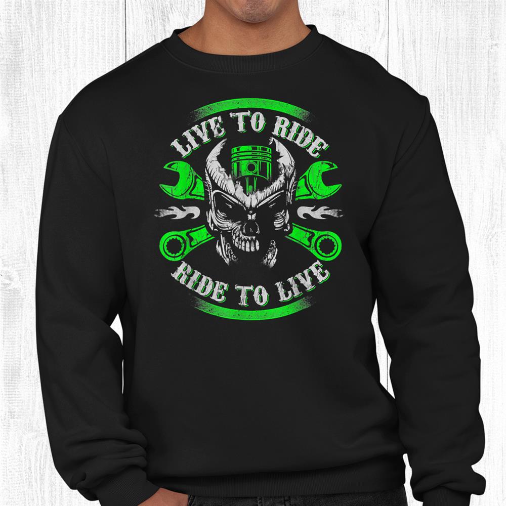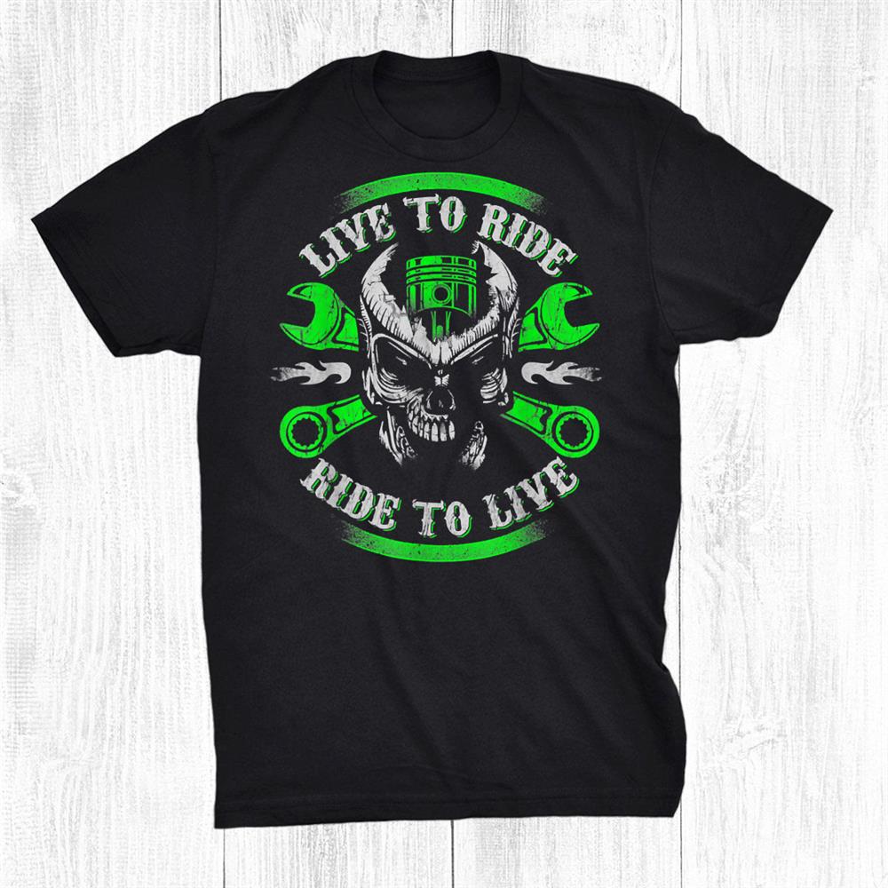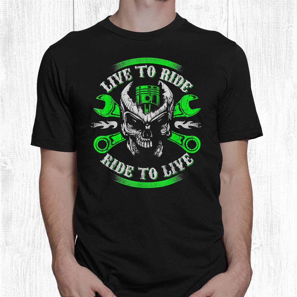 Live To Ride To Live Skull Biker Vintage Motorcycle Mechanic Shirt