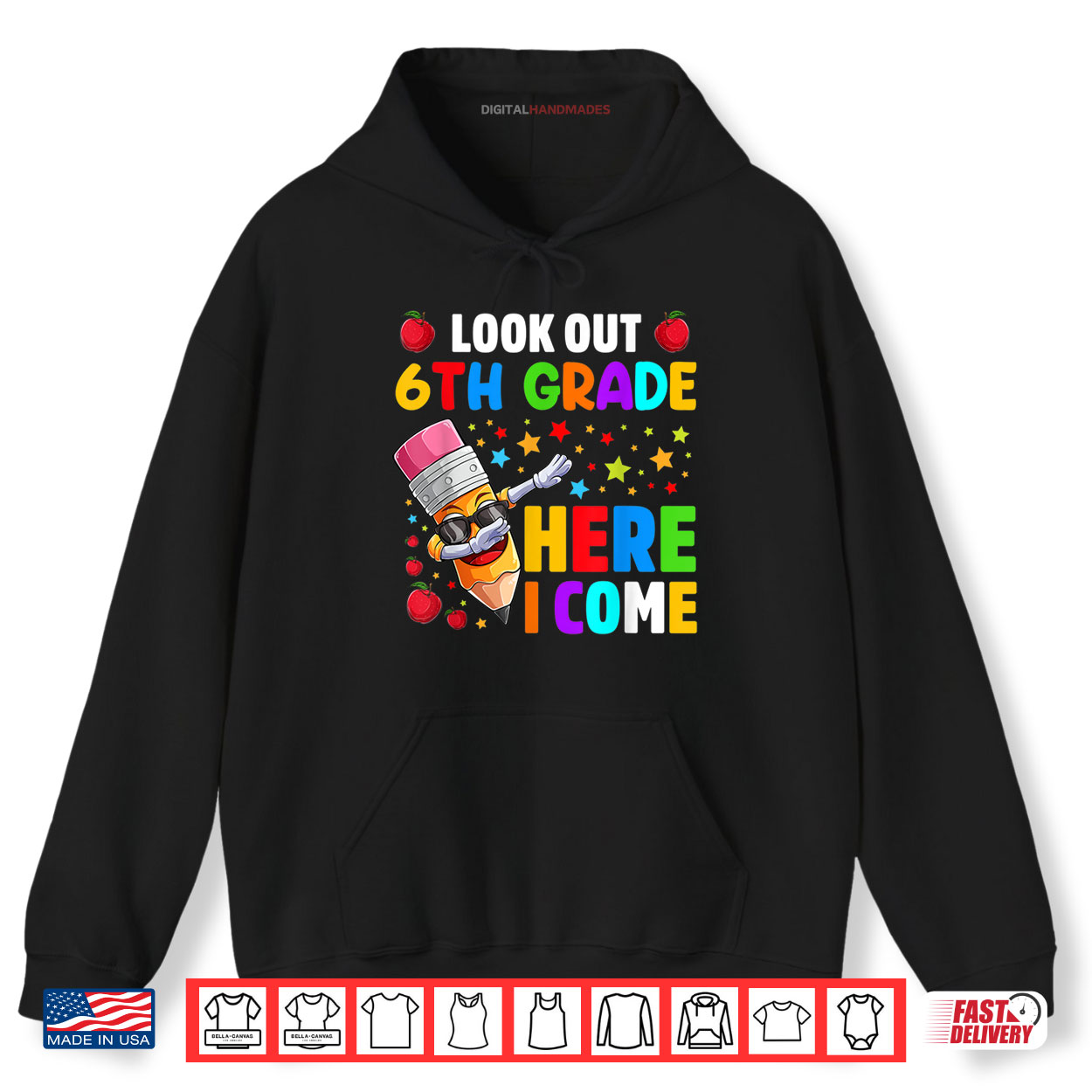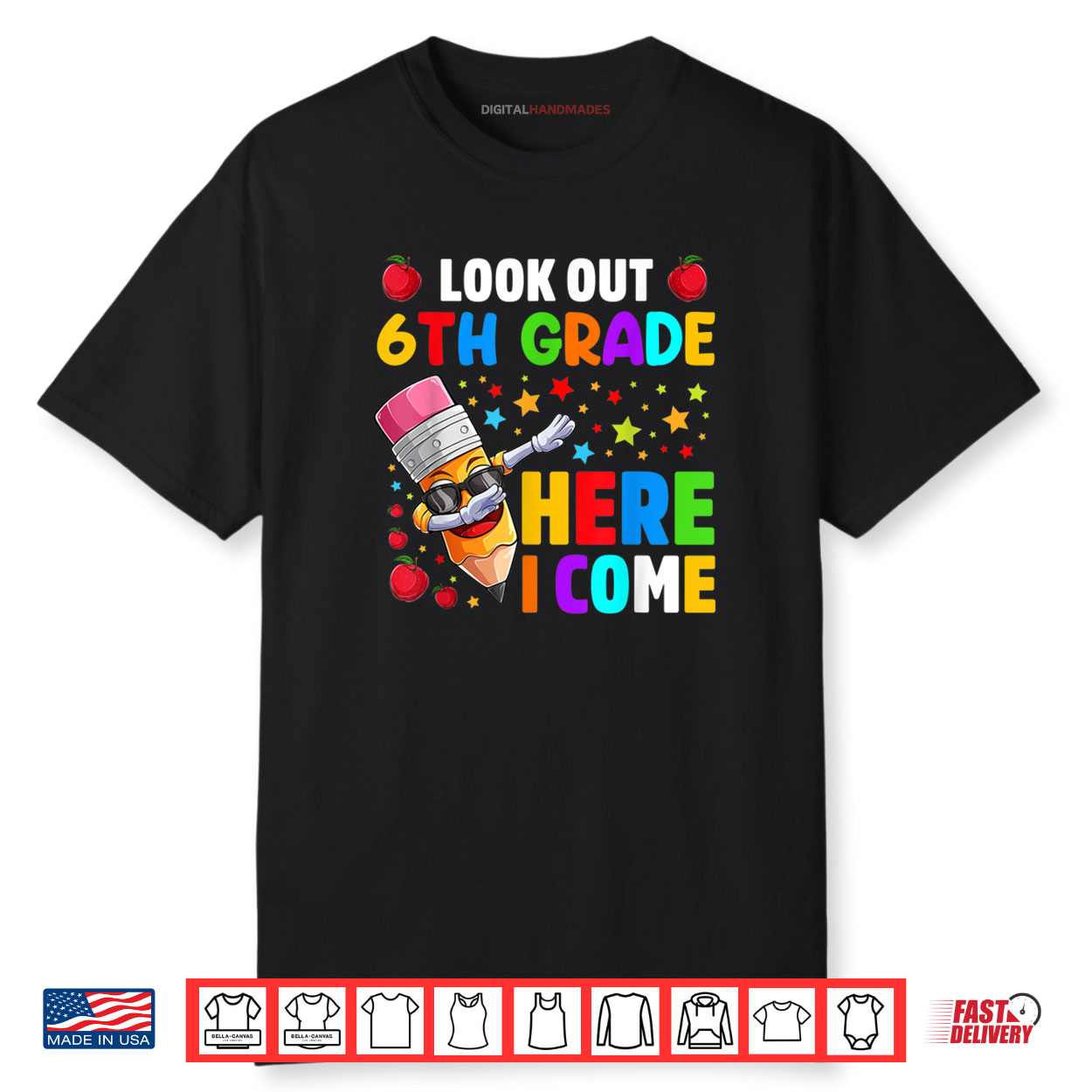Look Out 6th Grade Here I Come Back To School Shirt, Look Out 6th Grade Here I Come Tee Shirt, Back To School Student Transition Gift Shirt, Funny New Middle Schooler Apparel Shirt, 6th Grade Here I Come Slogan Style Shirt, Awesome Kid Moving Up From Elementary Shirt, Big Kid School Adventure Awaits Shirt, Look Out World 6th Grader Fun Shirt, Confident And Ready For 6th Grade Shirt, Hilarious Student Journey To Middle School Shirt