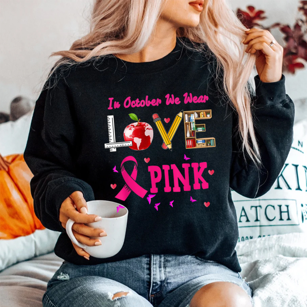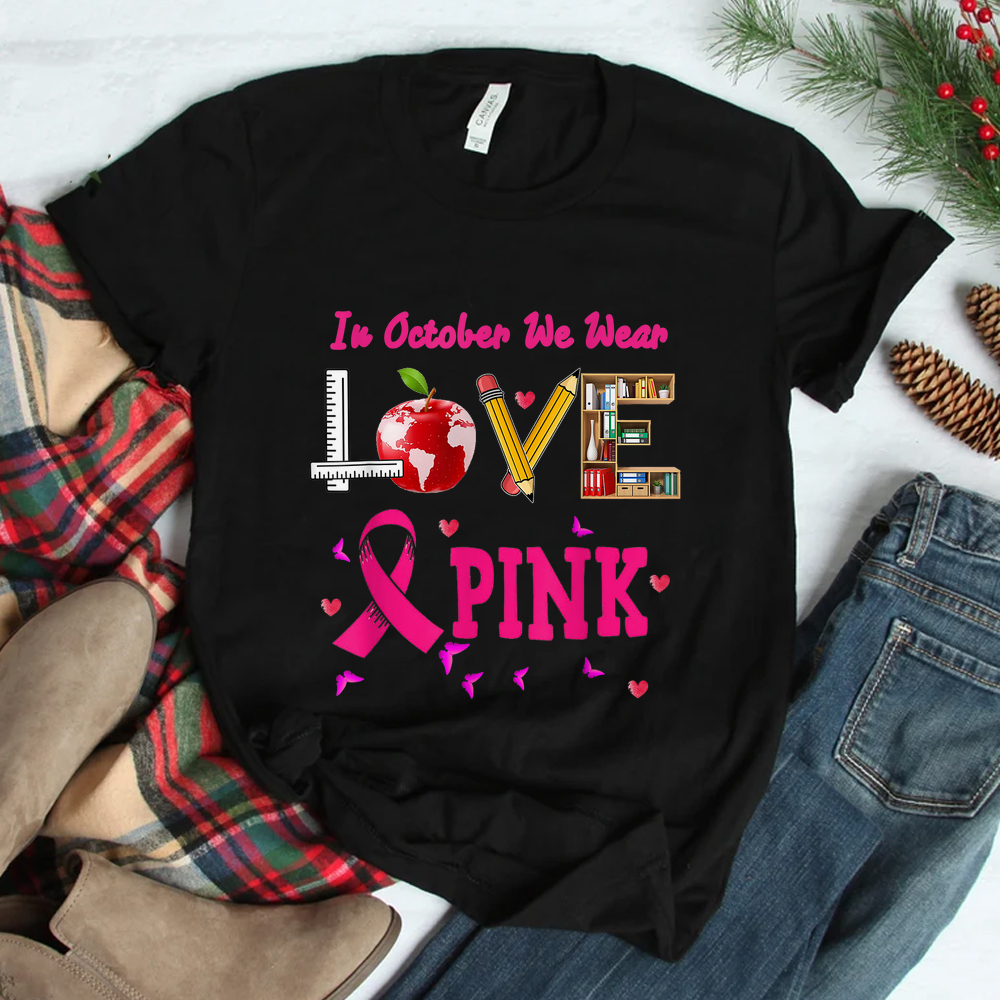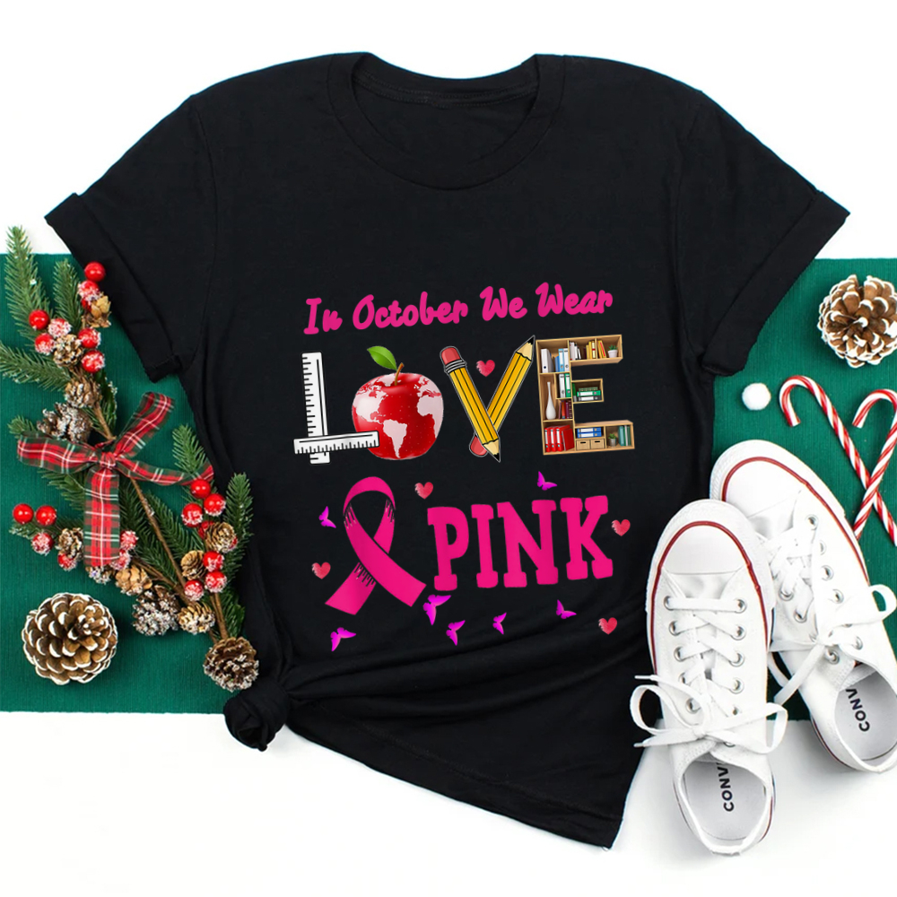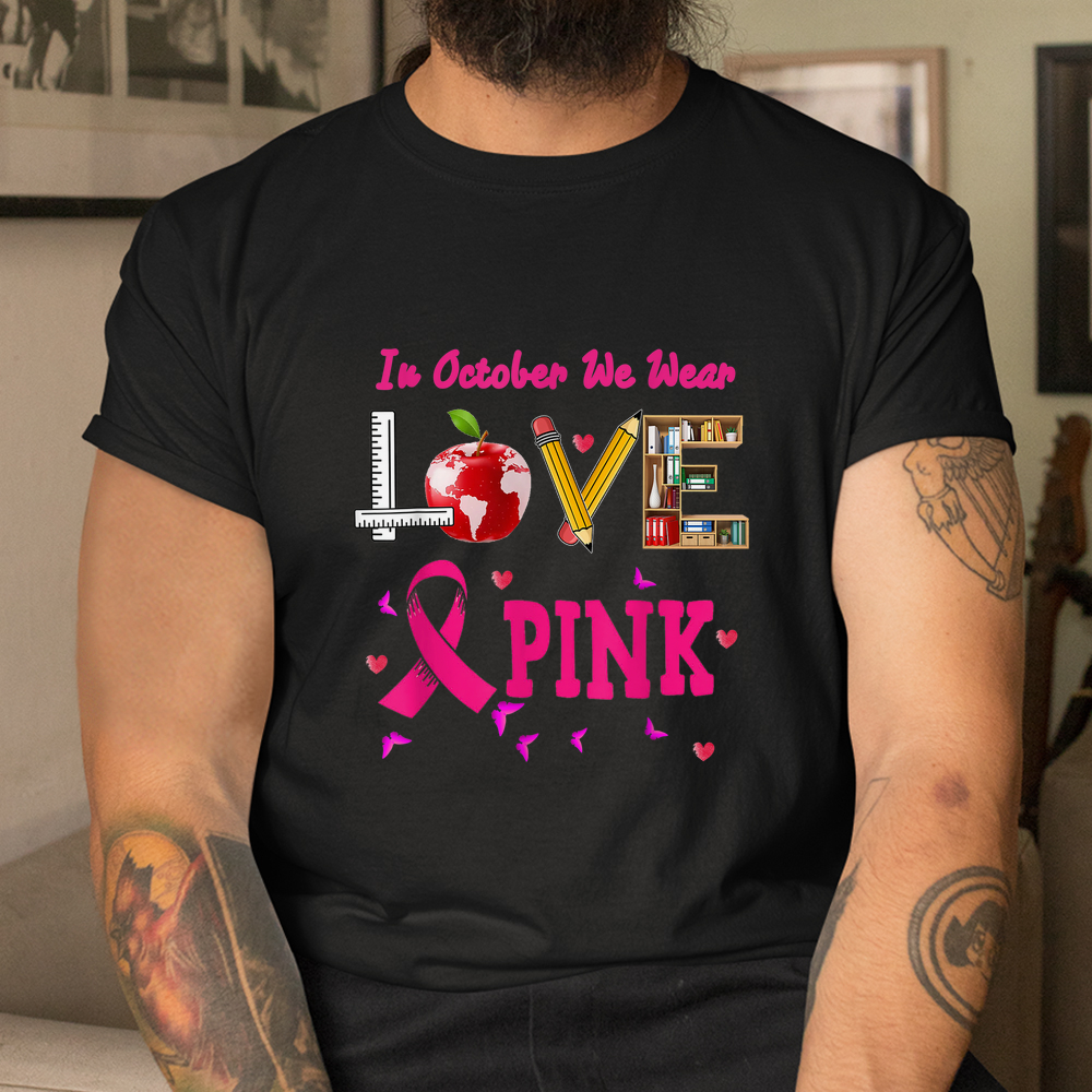 Love In October We Wear Pink Teacher Breast Cancer Awareness Shirt