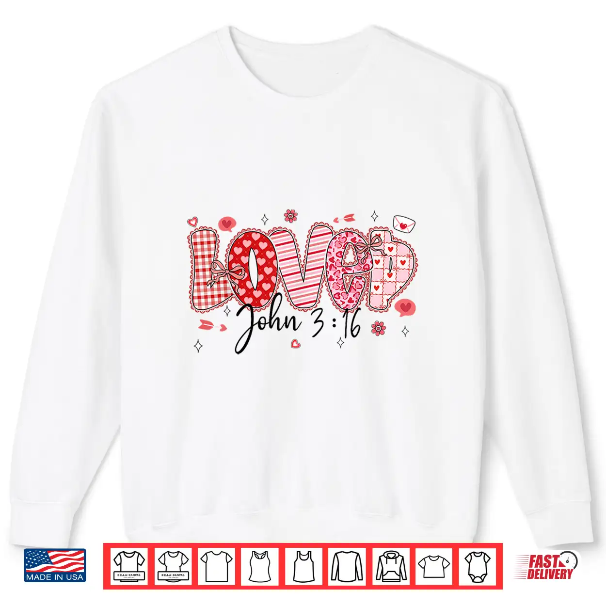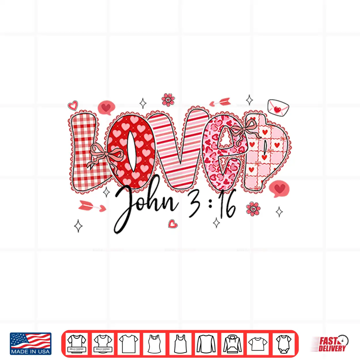 Love John 3 16 Valentine Coquette Bow Christian Women Girl Shirt