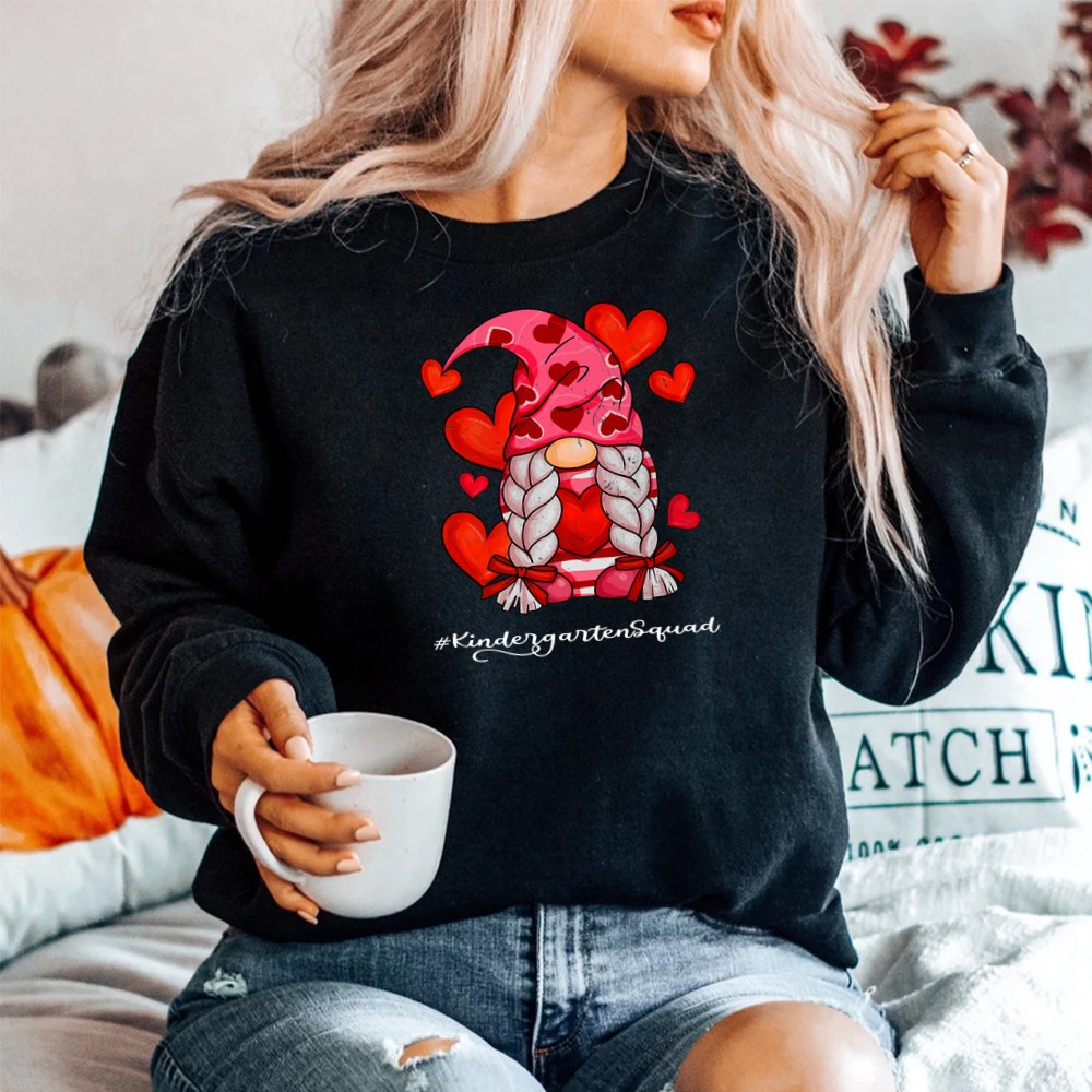 Love Kindergarten Squad Gnome Teacher Valentine’s Day Shirt