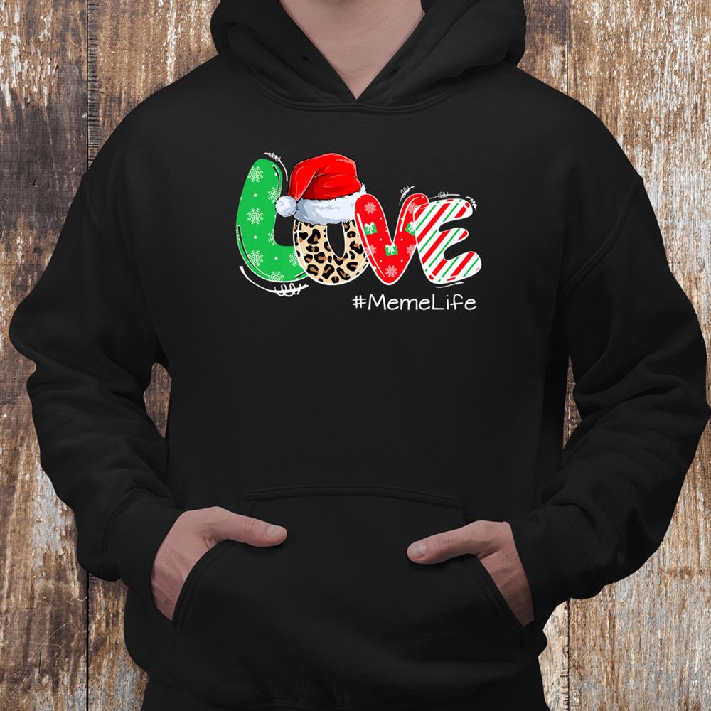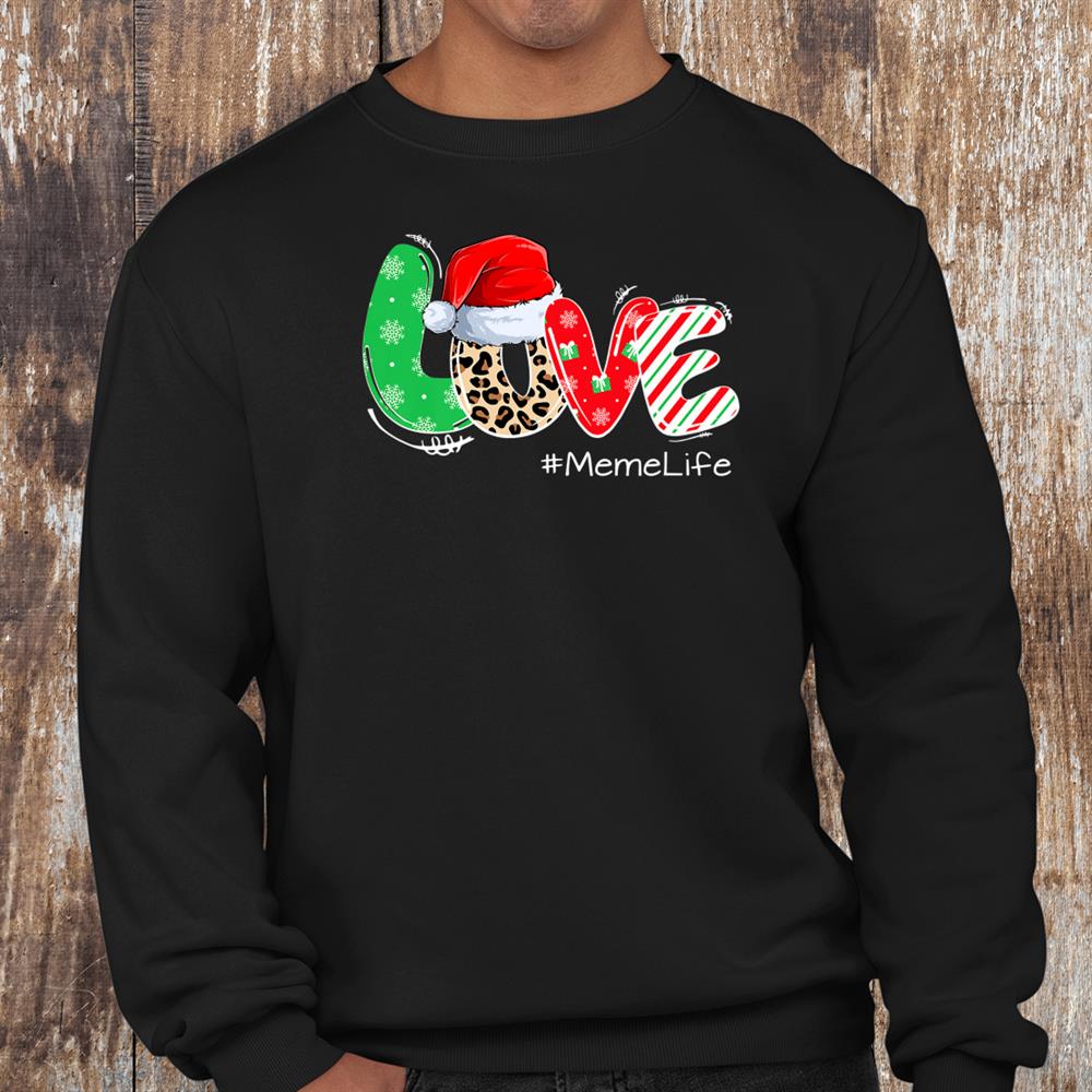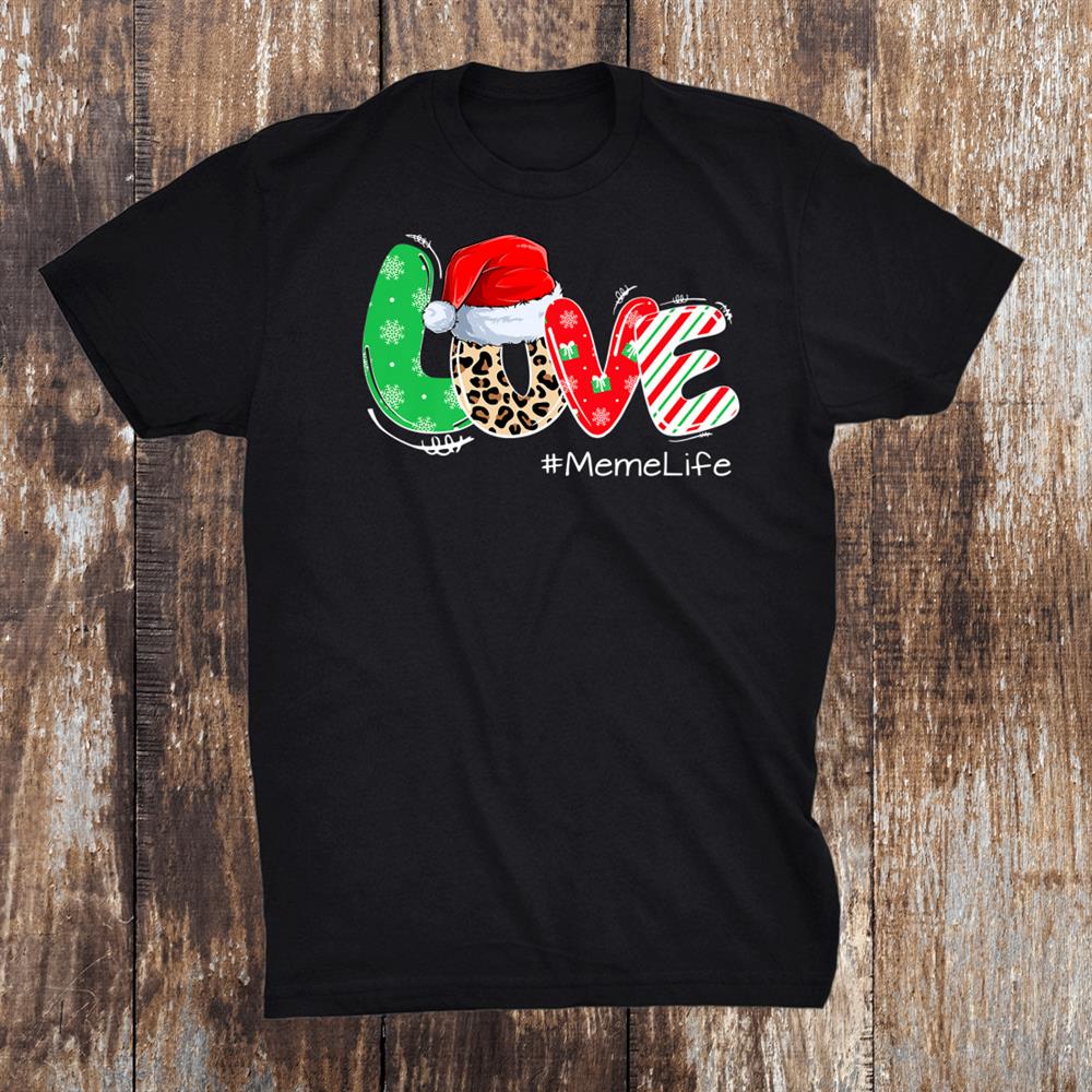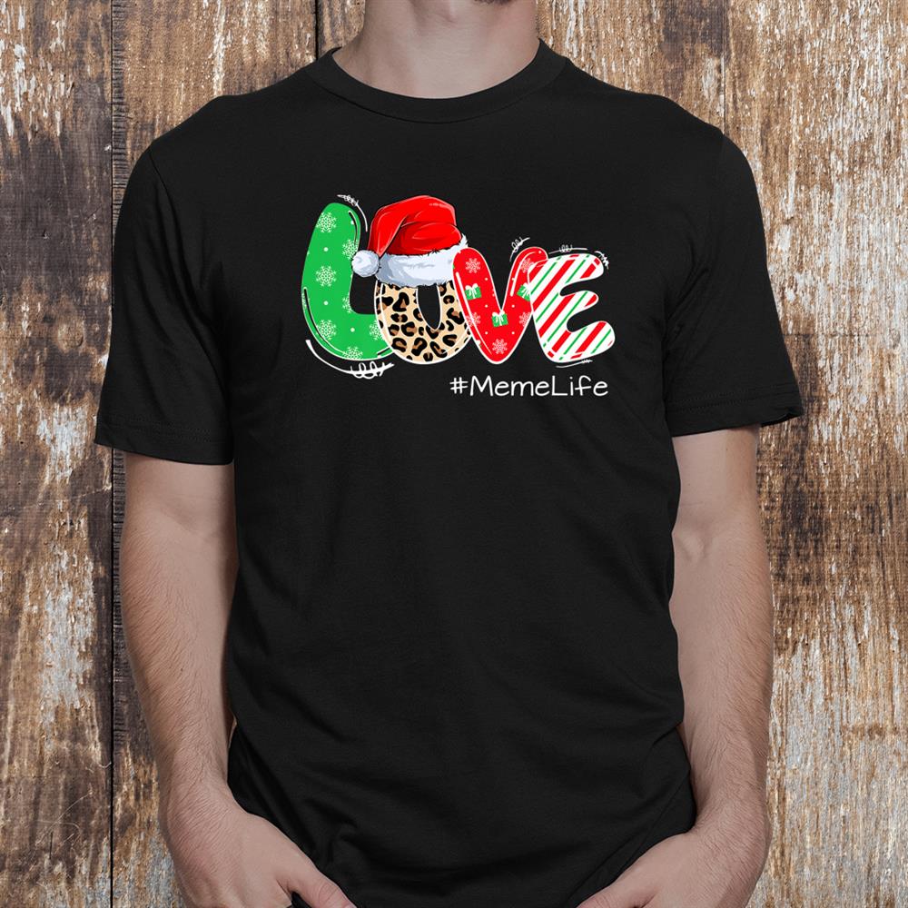 Love Merry Christmas Meme Life Leopard With Hat Santa Shirt