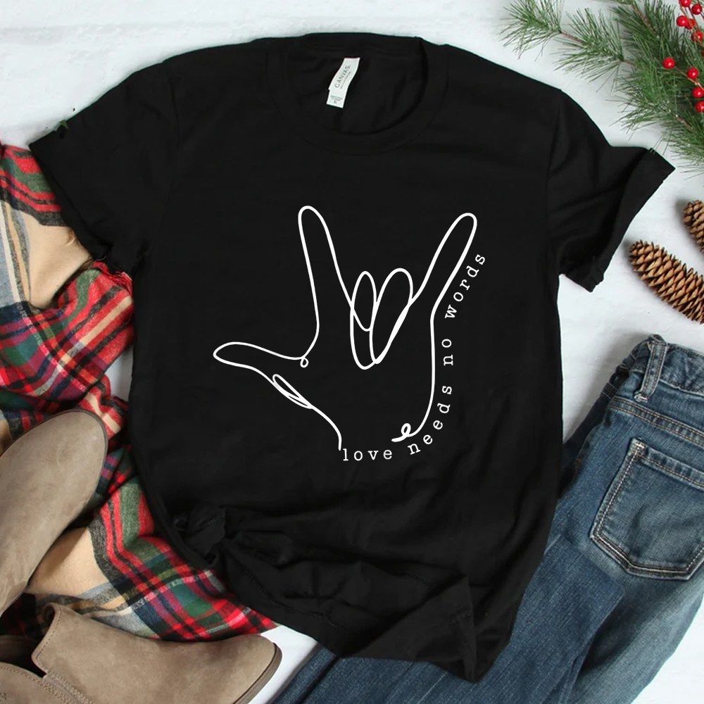 Love Need No Word Asl Autism Awareness Sped Teacher Shirt
