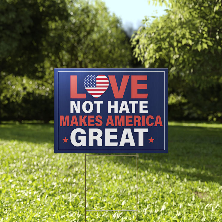 Love Not Hate Makes America Great Yard Sign is meaningful especially in the context of promoting social justice, human rights, and anti-racism movements.