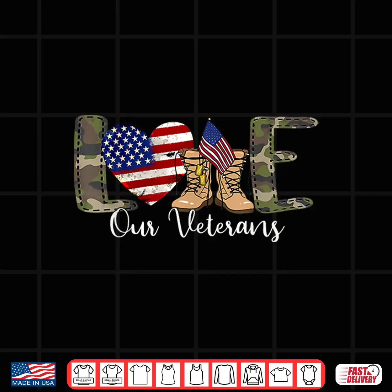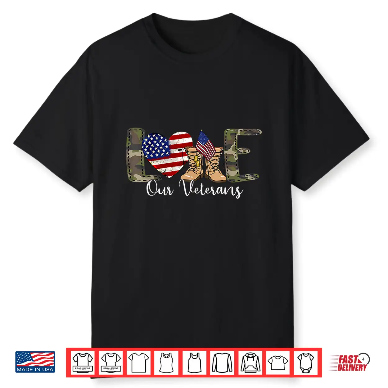 Love Our Veterans Day Proud Military American Flag Shirt