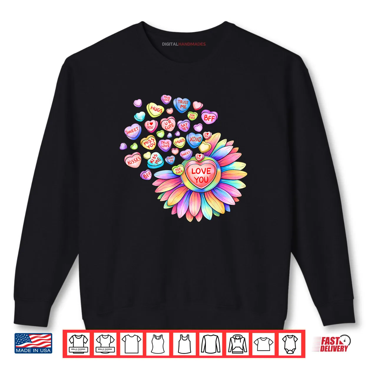 love sunflower hearts, candy, valentines day, romantic, floral, aesthetic, hearts, holiday, gift, shirt