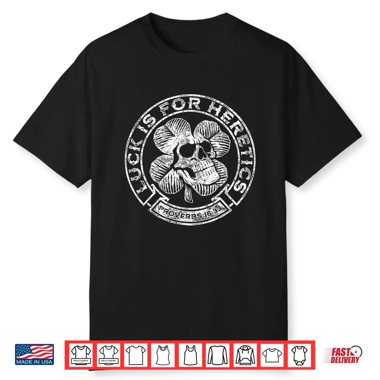 Lucky Is For Heretics Proverbs 16 33 Skull St Patricks Day Shirt