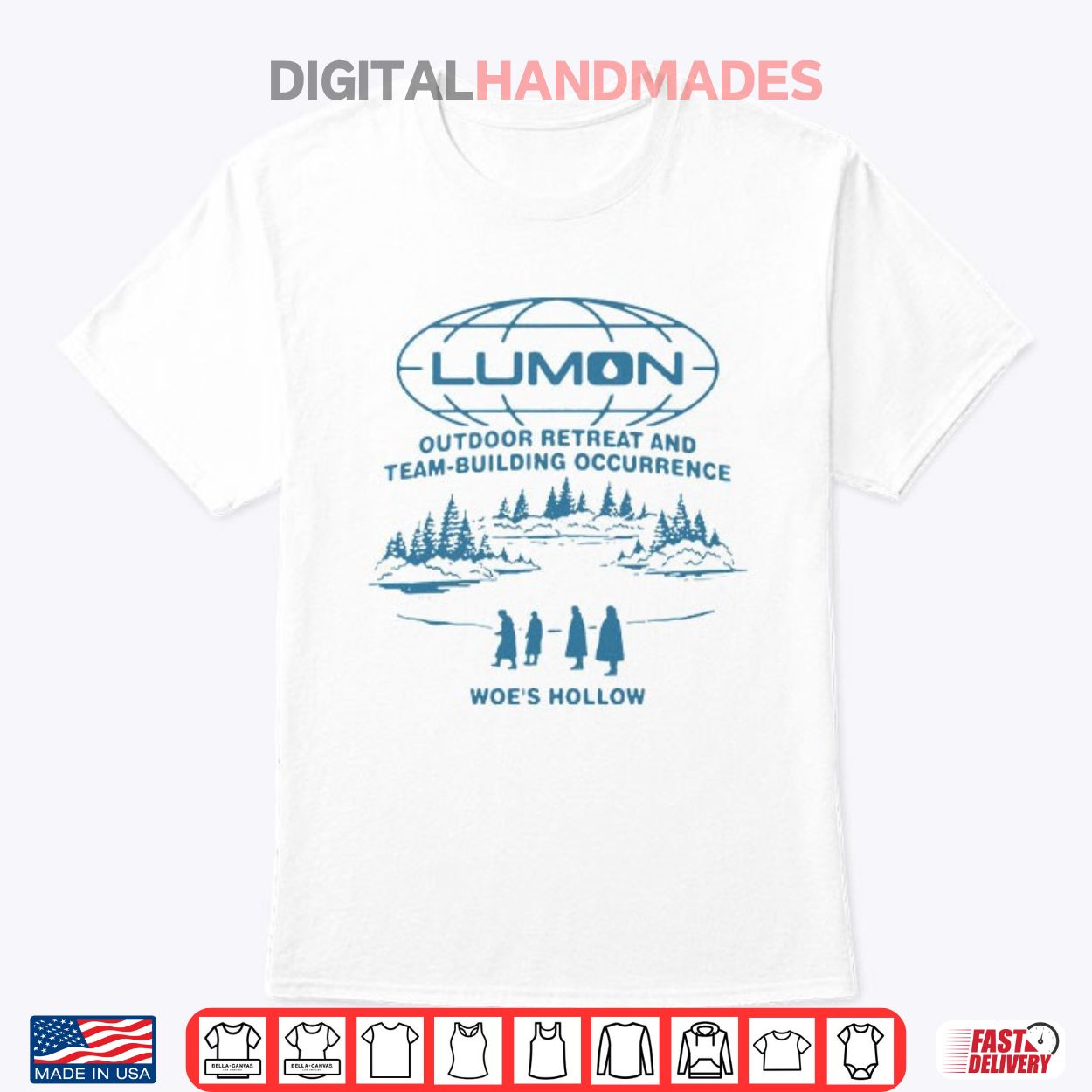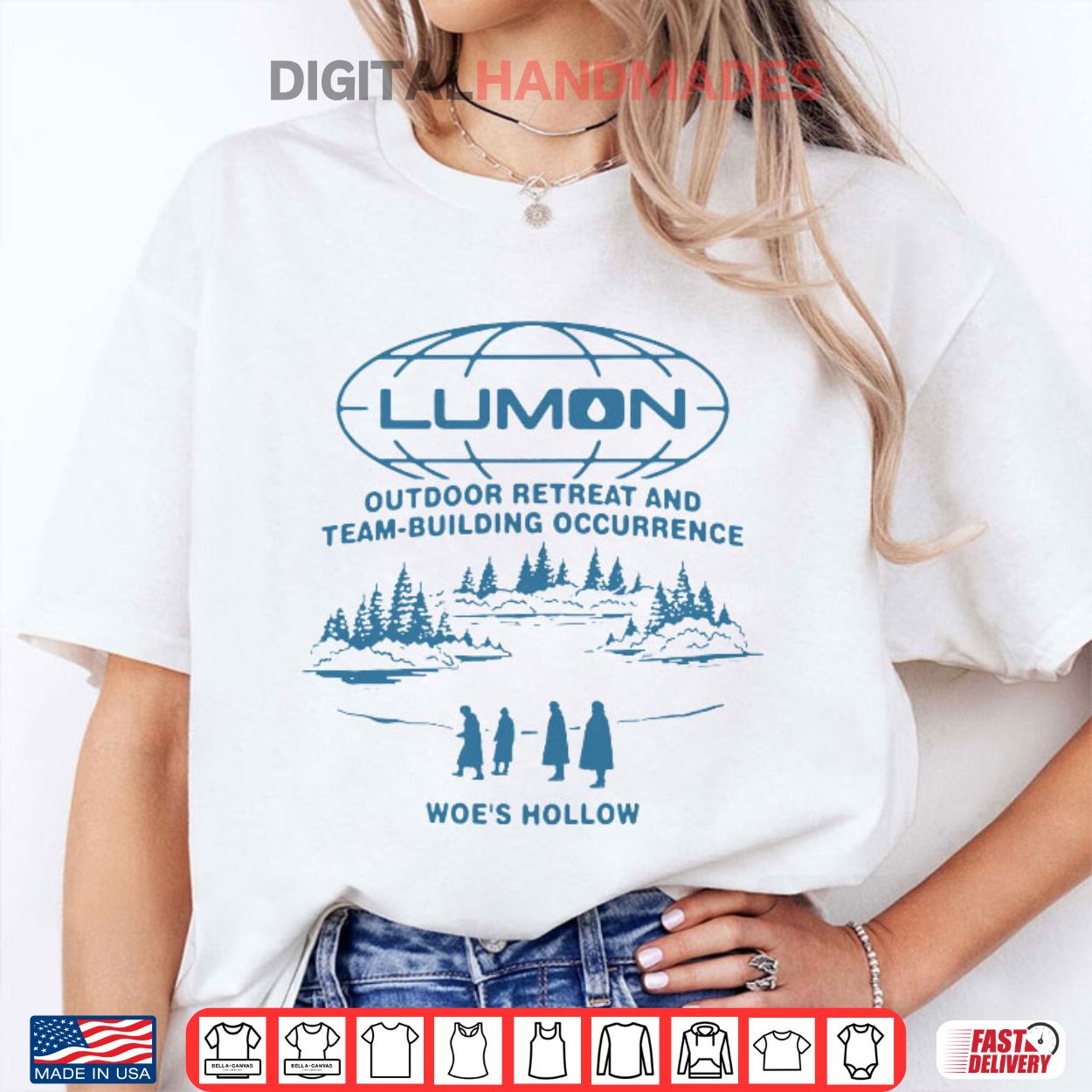 In the show, Lumon organizes bizarre and unsettling corporate events to reinforce its cult-like atmosphere. Lumon Outdoor Retreat And Team-Building Occurrence Woe’s Hollow T Shirt is a nod to Severance’ s dark, satirical take on corporate life.