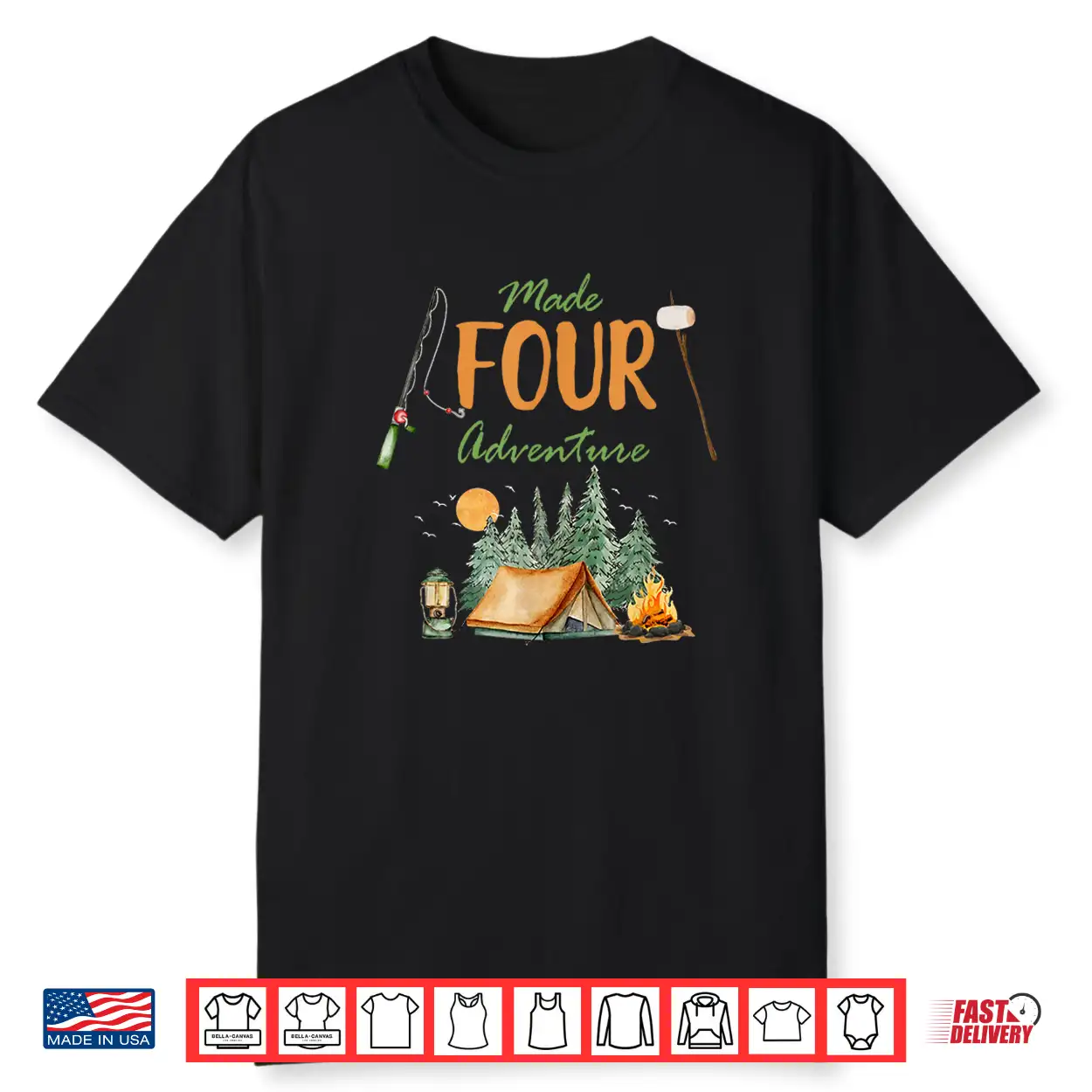 Made Four Adventure 4Th Birthday Camping Outdoor Themed Shirt