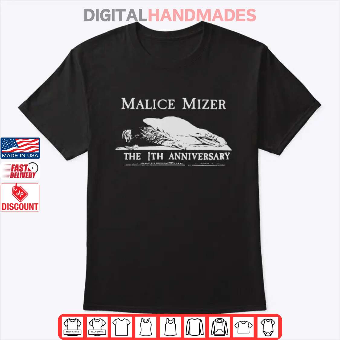 Malice Mizer The 1Th Anniversary T Shirt celebrates the 1st anniversary of the Japanese visual rock band Malice Mizer. This design is perfect for fans and supporters of the band.
