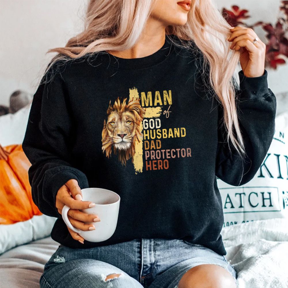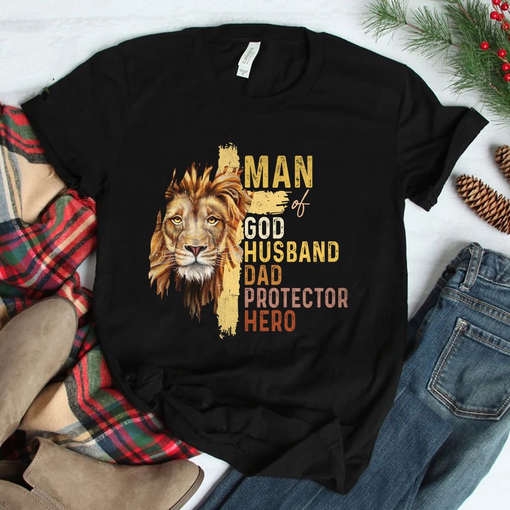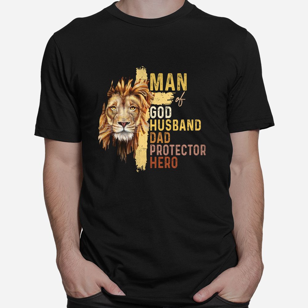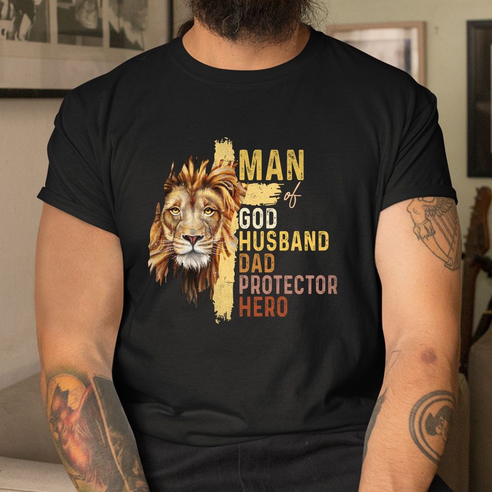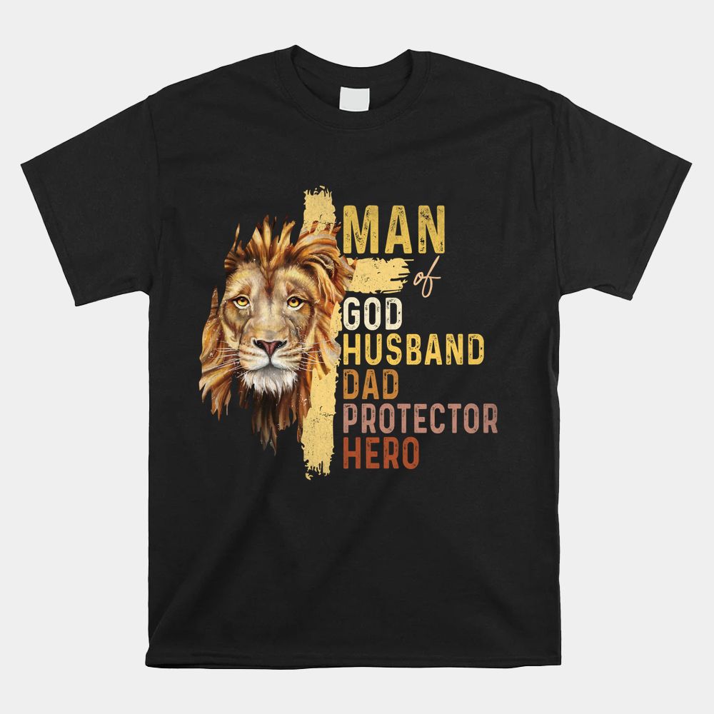 Man Of God Husband Dad Protector Hero Christian Shirt
