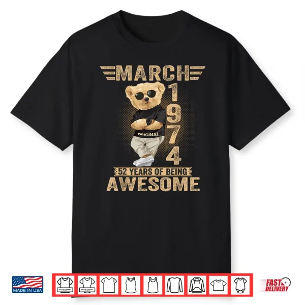 March 52Nd Birthday Men Women 1974 Awesome Teddy Bear Shirt