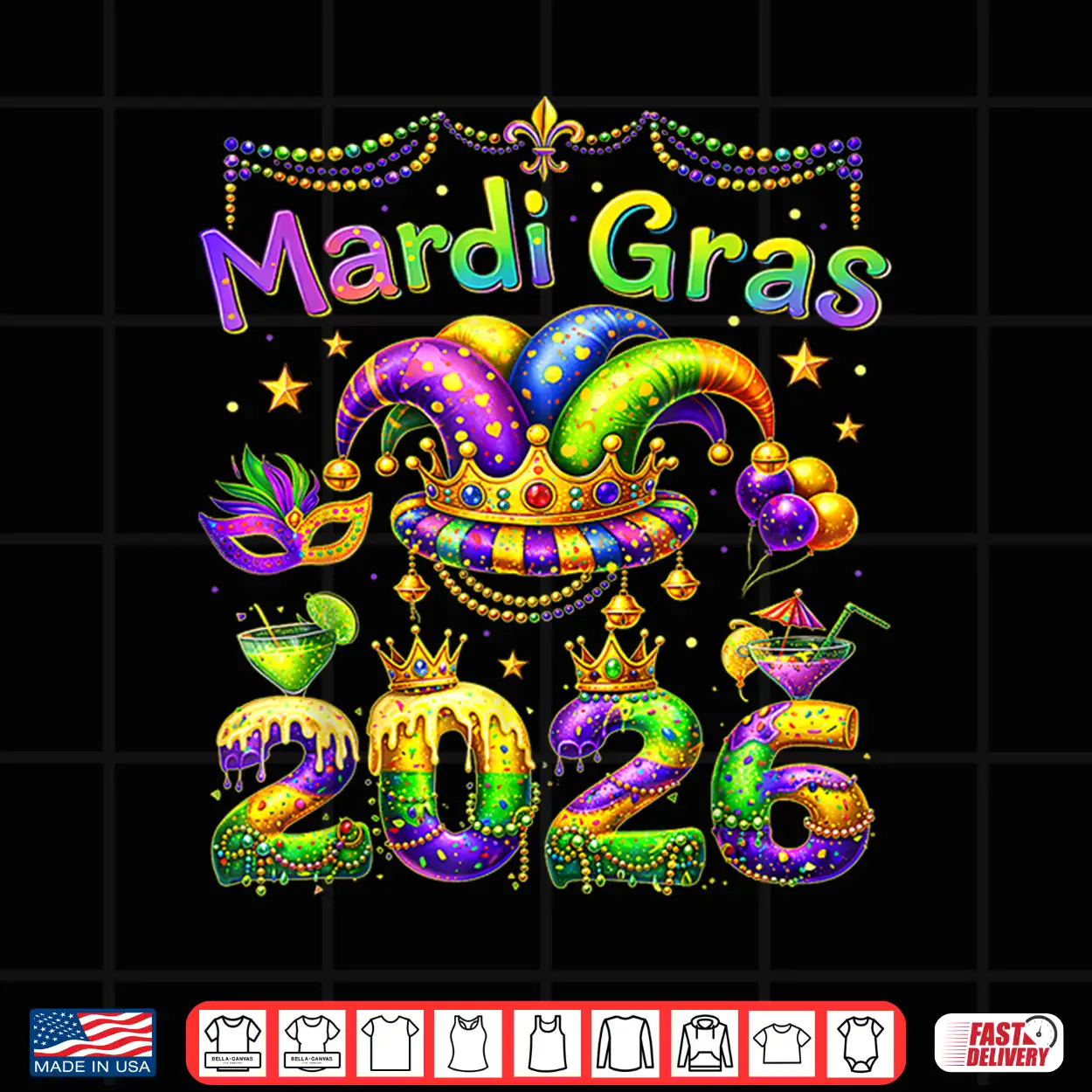 Mardi Gras 2026, Carnival, Jester, Beads, Parade, NOLA, shirt