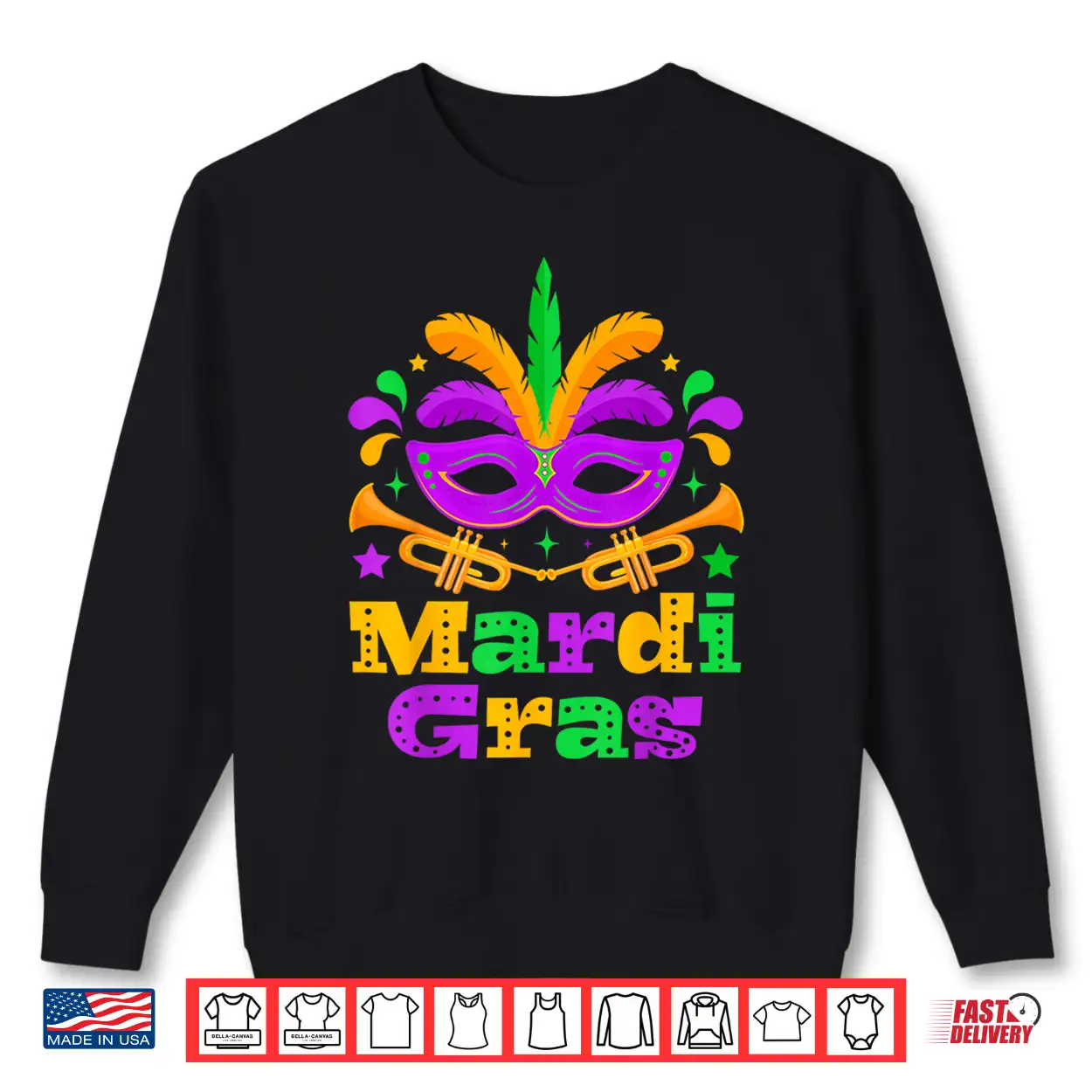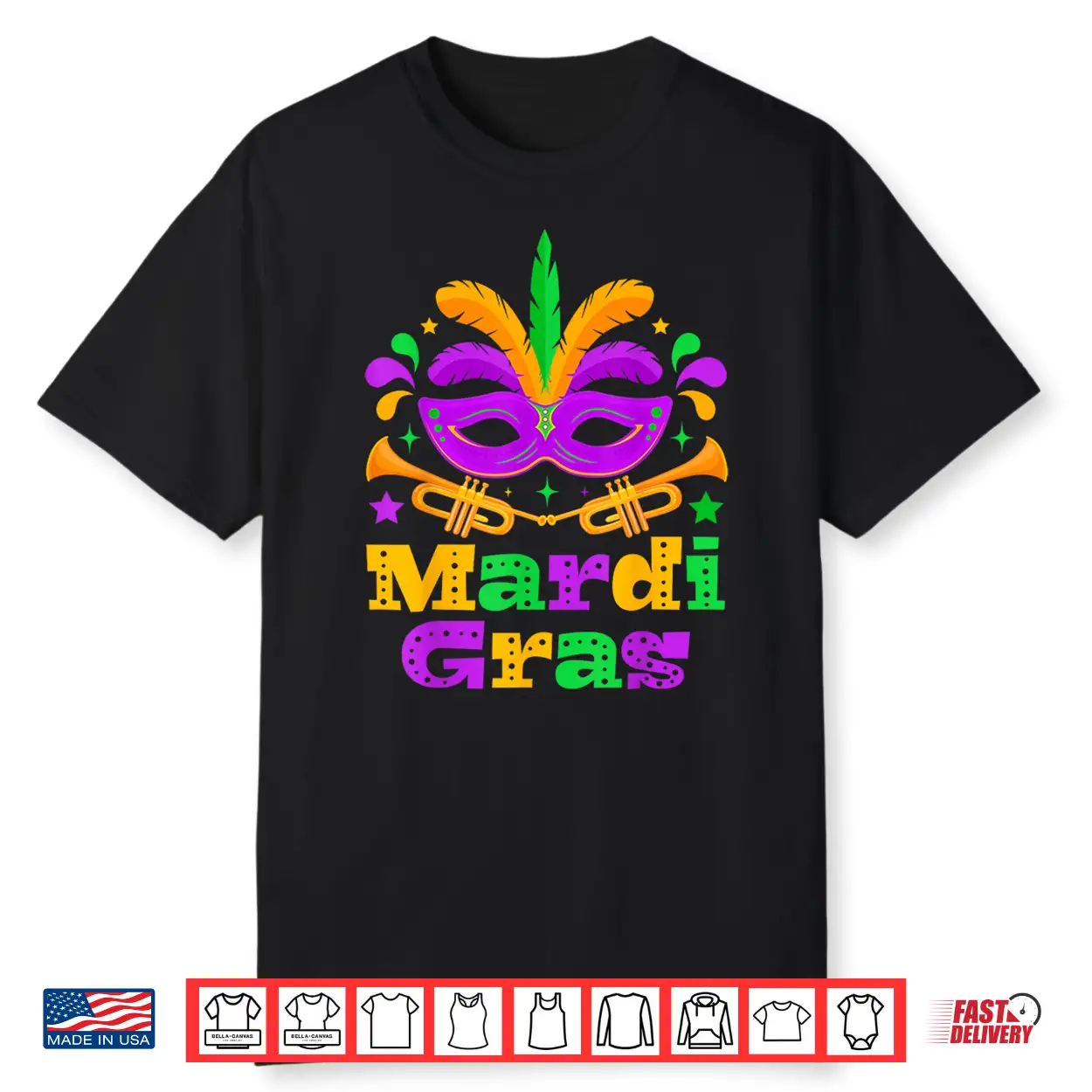 Mardi Gras Beads Mask Feather Parade Carnival Party Matching Shirt
