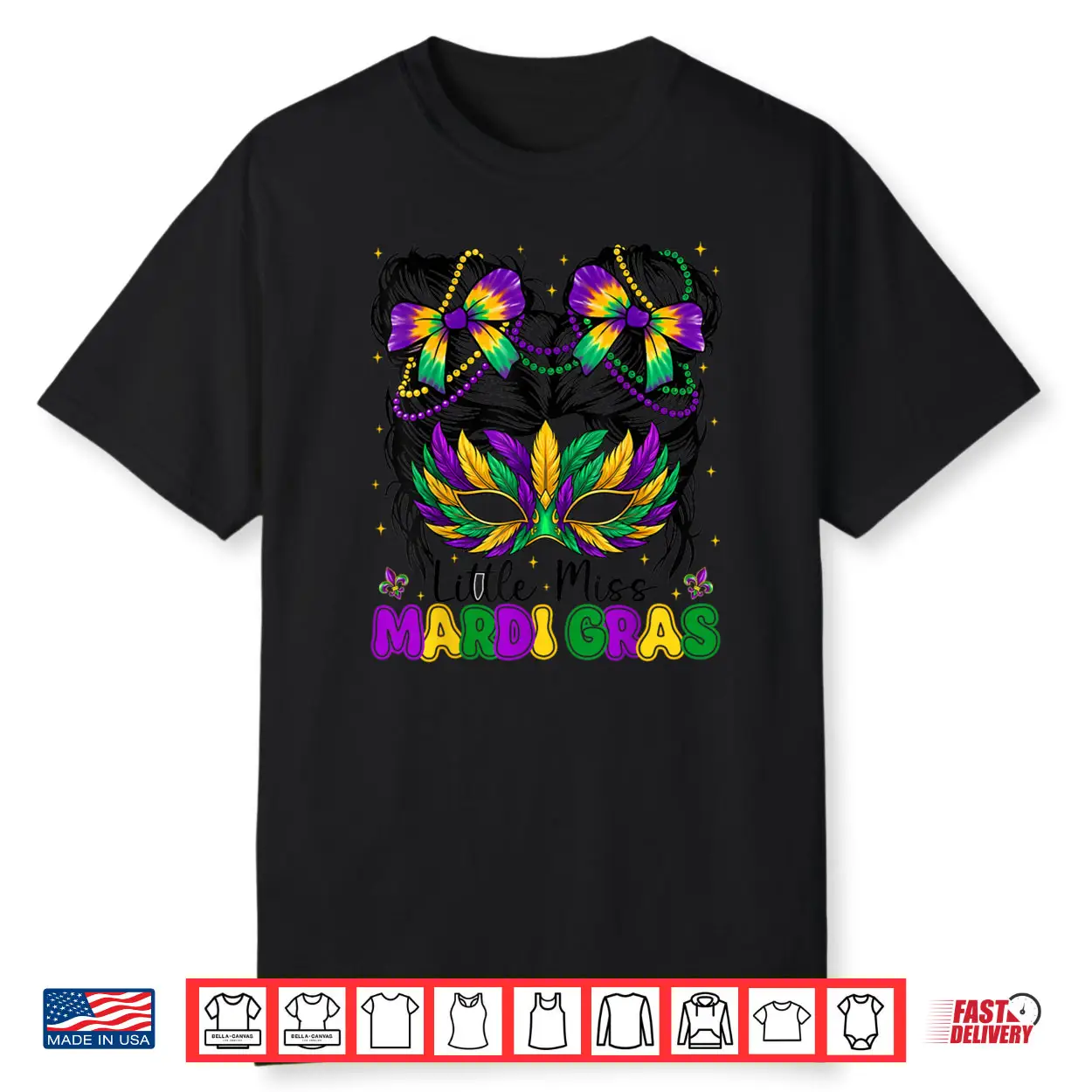 Mardi Gras Messy Bun Coquette Bead Shirt
