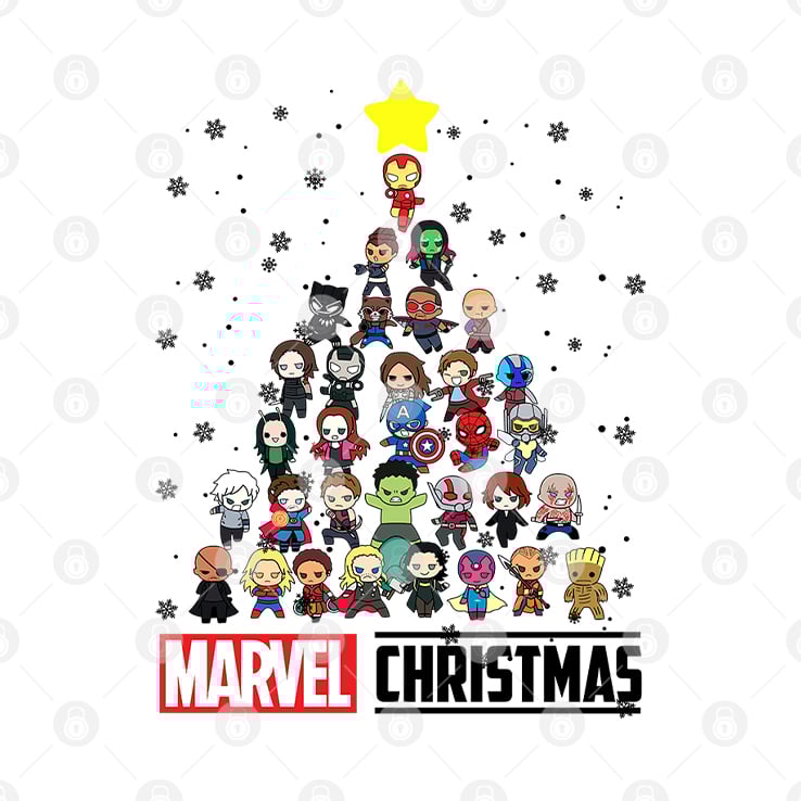 This design merges Marvel fandom with Christmas spirit, making it a fun, festive shirt for fans who want to combine their love for superheroes with holiday cheer.