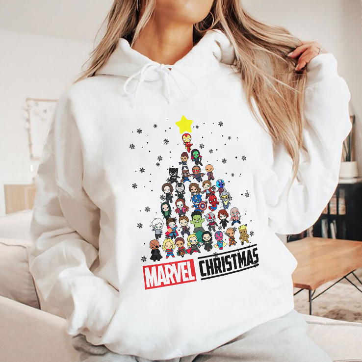 Marvel Studios Avengers Characters Chibi Tree Christmas T Shirt combines the festive spirit of Christmas with popular Marvel characters, creating a fun design. Keep on reading if you’re also a fan of Marvel and Christmas.