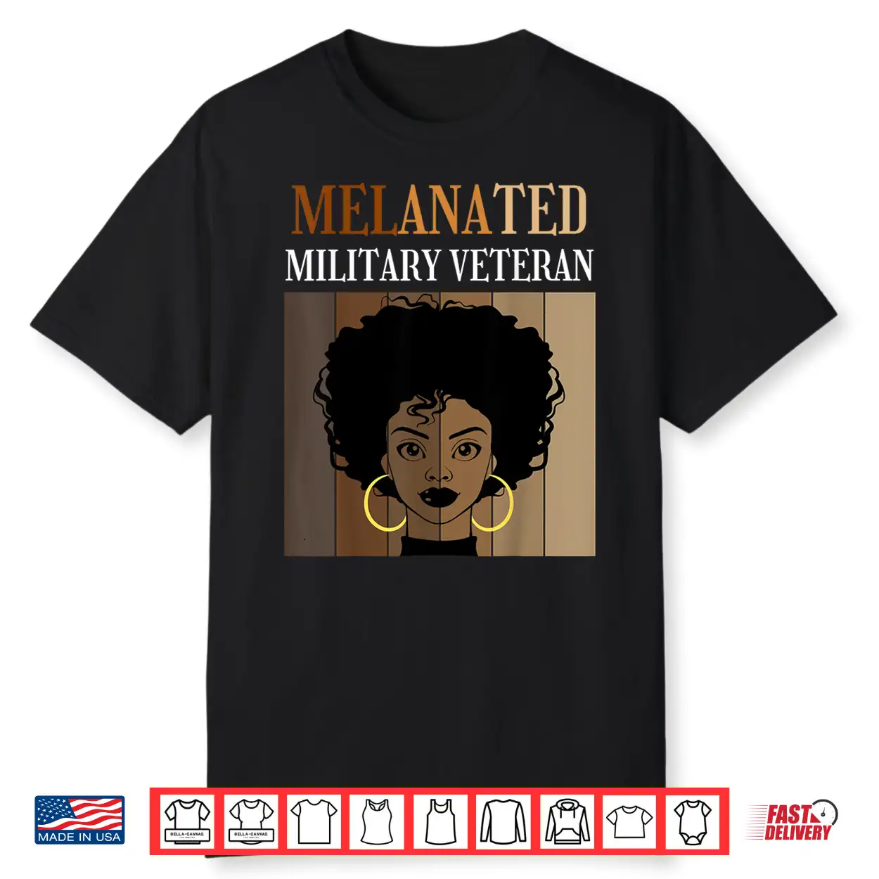 Melanated Military Veteran Veterans Day Black Afro Novelty Shirt