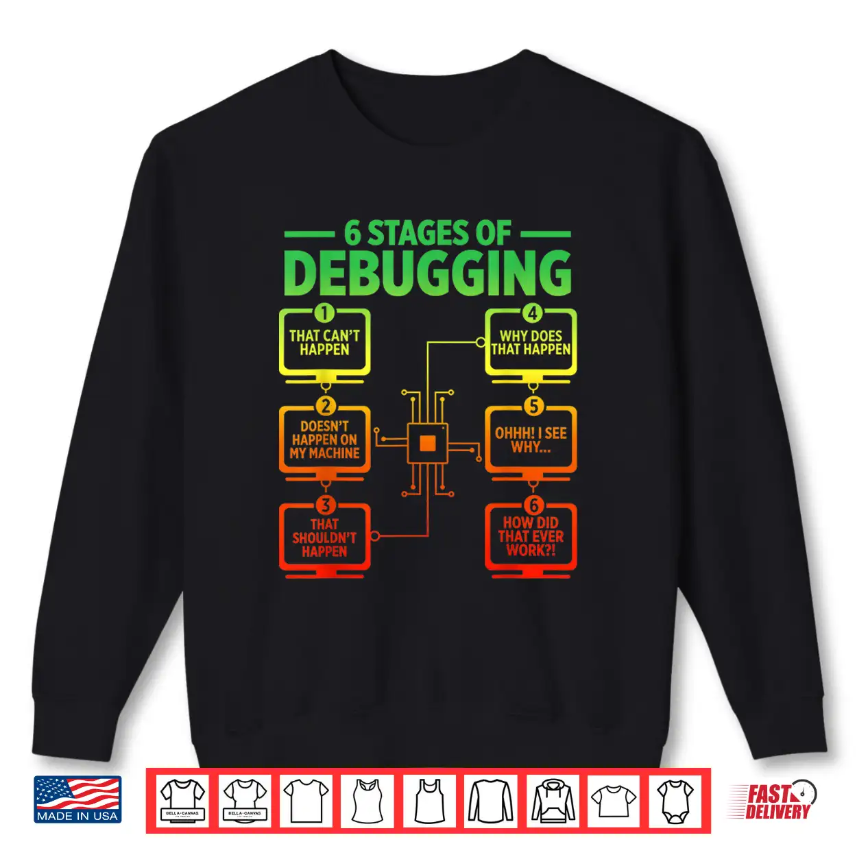 Mens 6 Stages Of Debugging Funny Programmer Computer Software Shirt