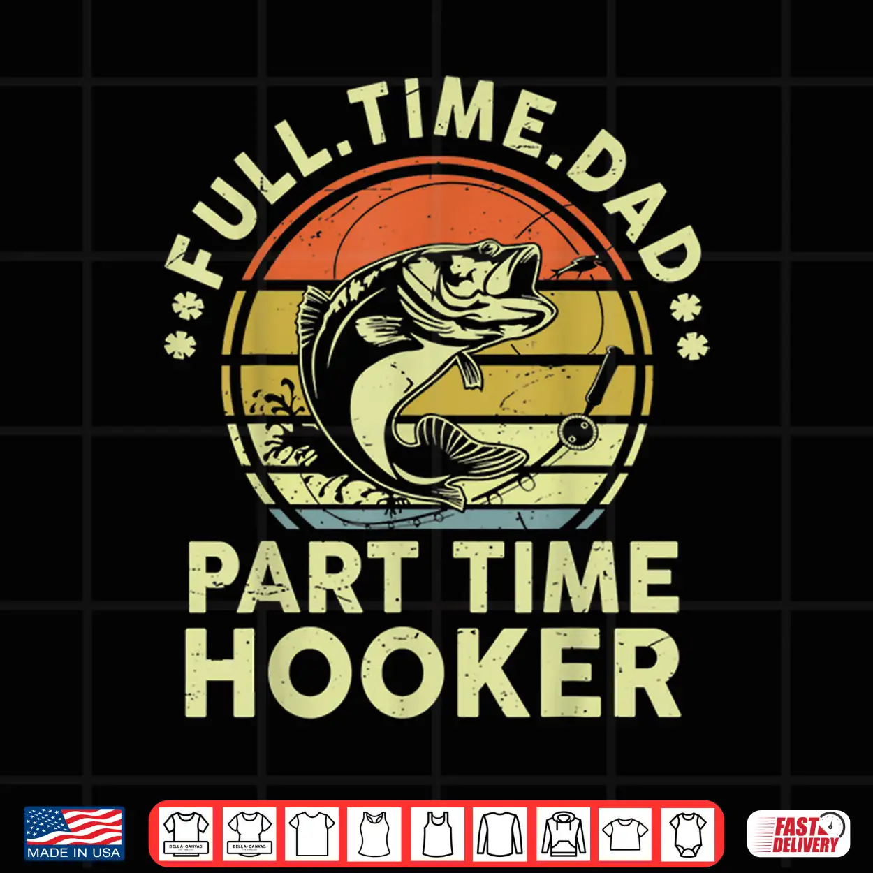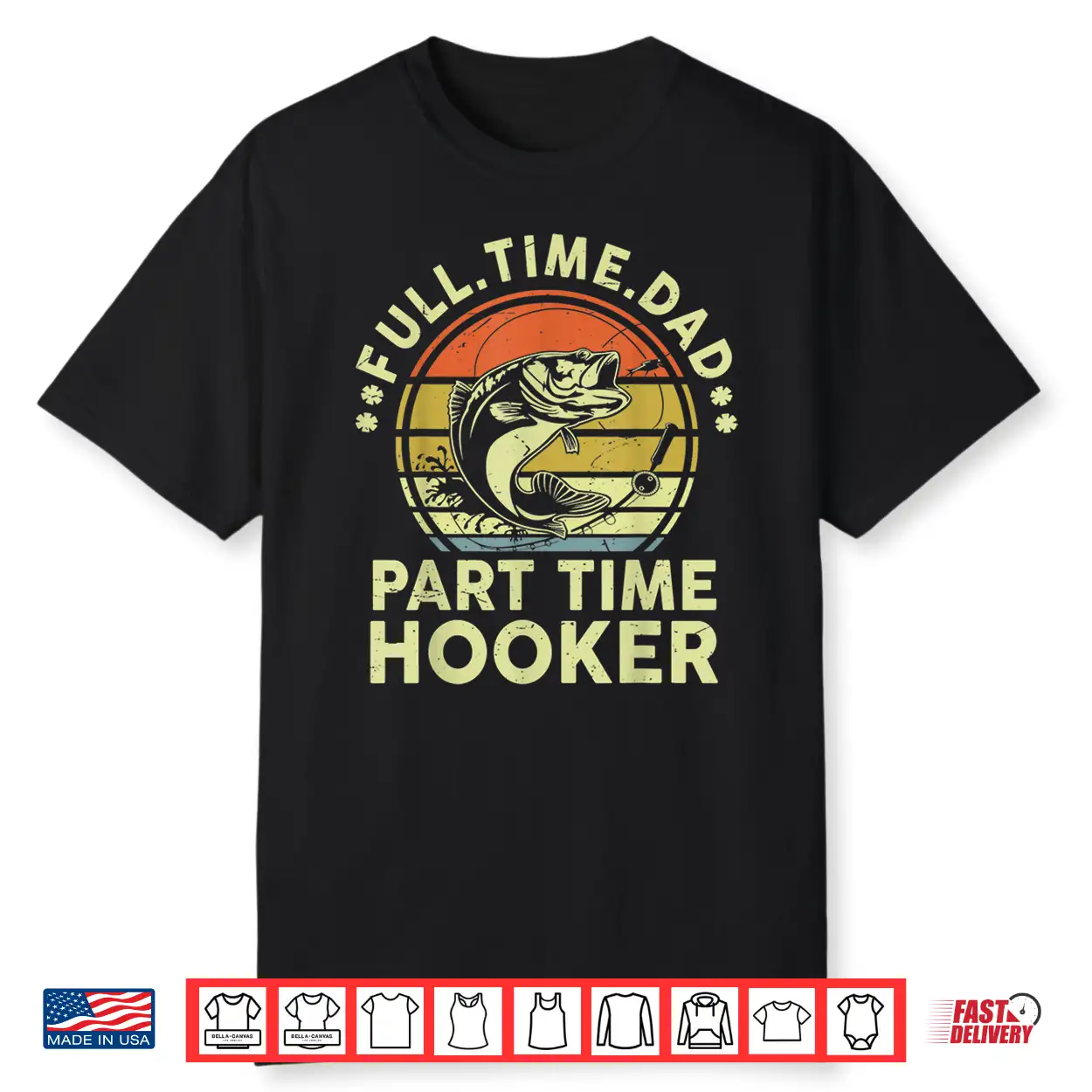 Mens Funny Fathers Day Fishing Full Time Dad Part Time Hooker Shirt