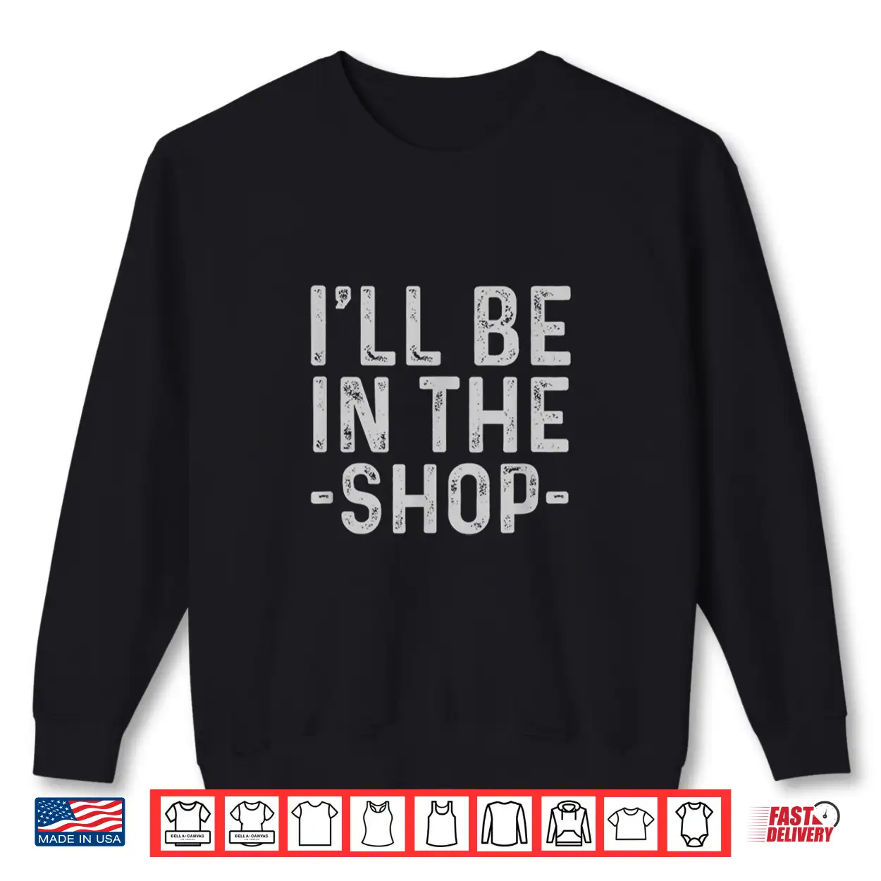 Mens I’Ll Be In The Shop Mechanic Dad Joke Funny Handyman Grandpa Shirt