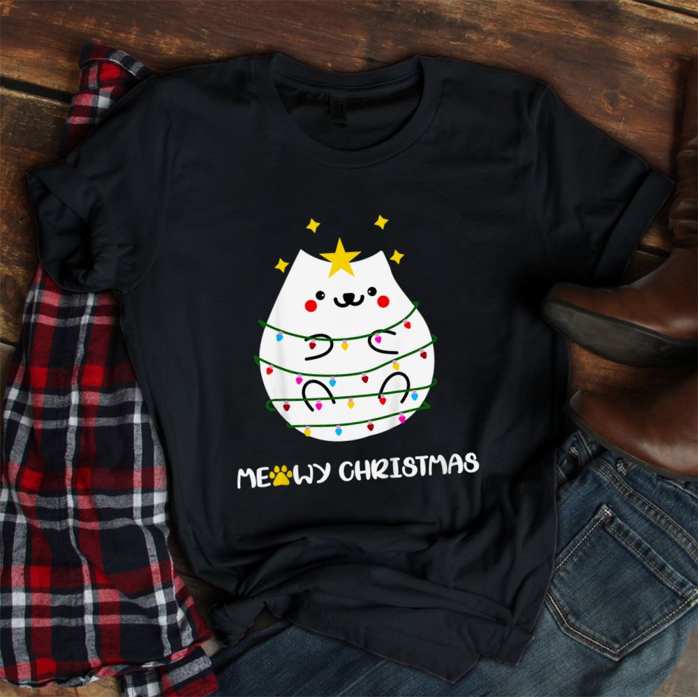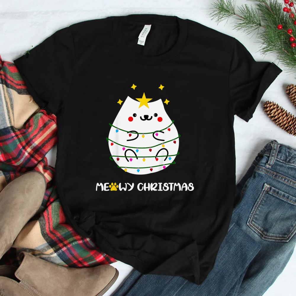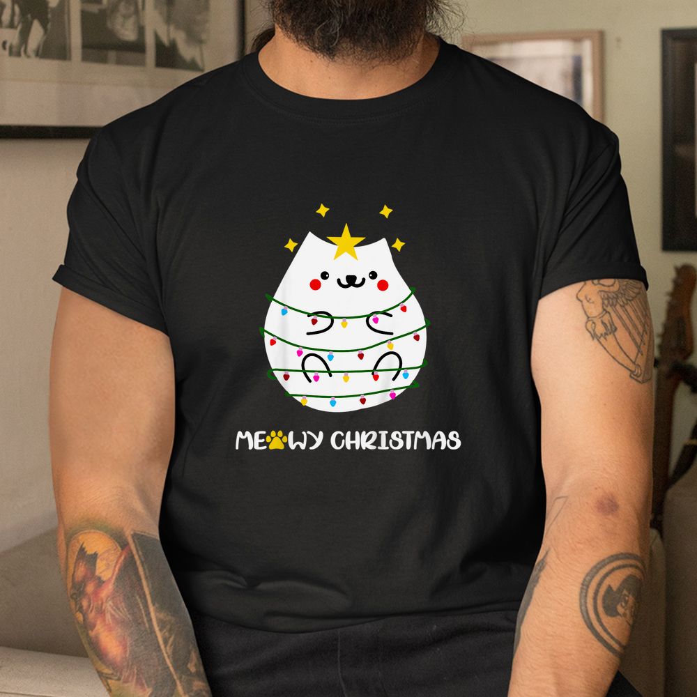 Meowy Catmas Cat Christmas Xmas Lights Wrapped Around Shirt