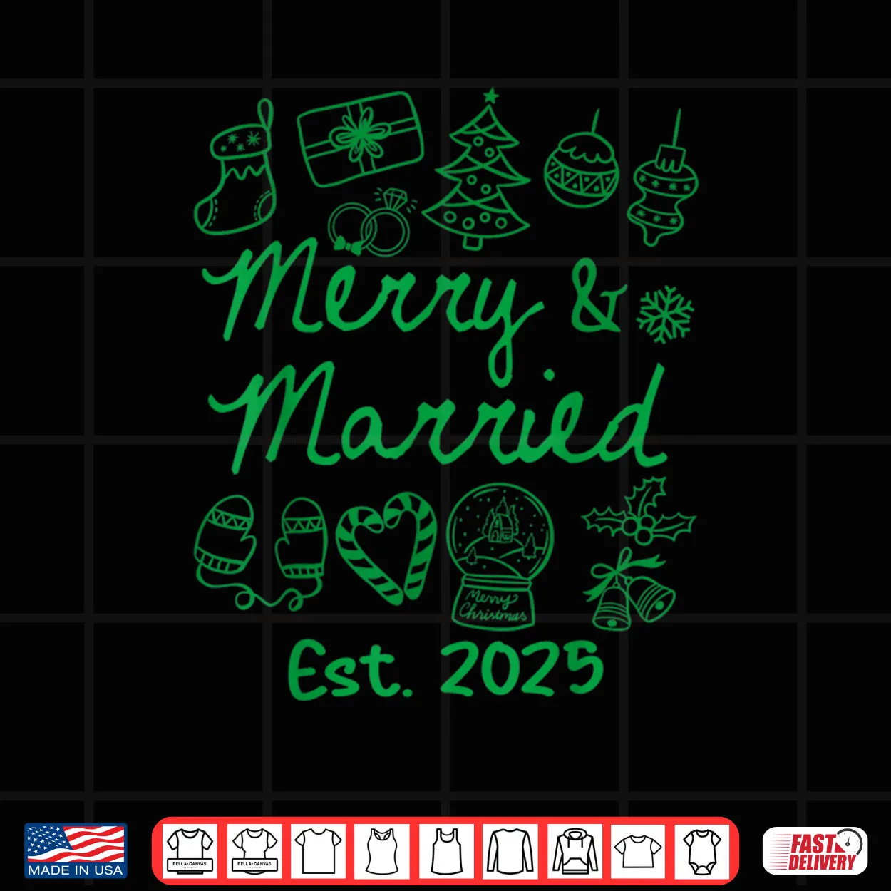merry and married, est 2025, christmas couples, matching group, newly married, wedding 2025, holiday match, engagement gift, funny couple, first christmas