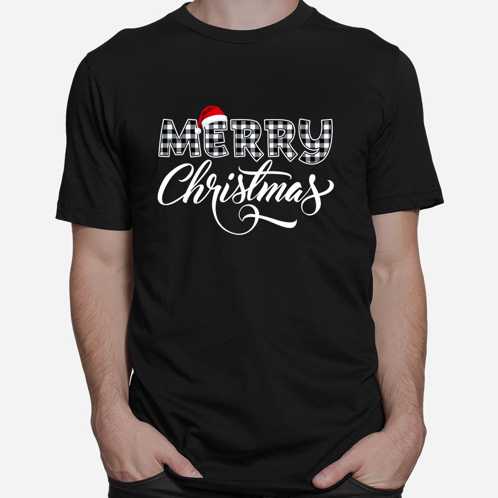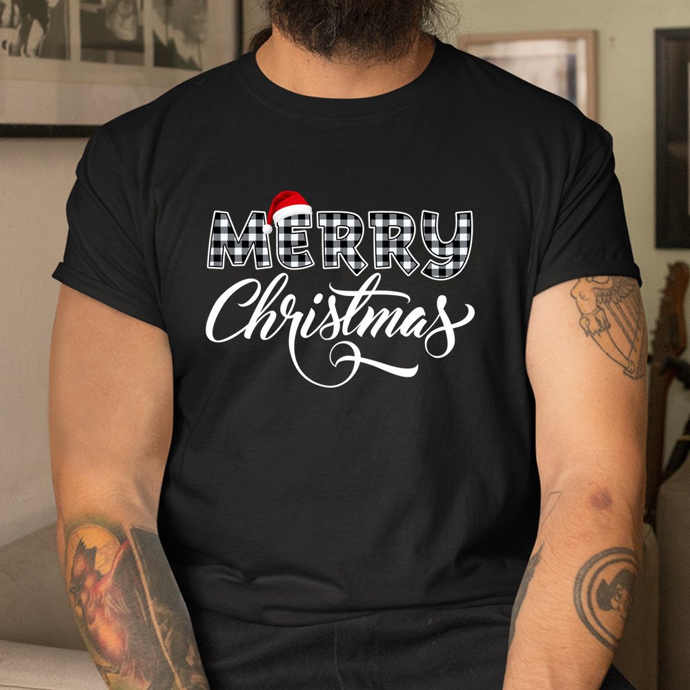 Merry Christmas Buffalo Black And White Plaid Shirt, hoodie, sweatshirt, long sleeve and ladies T-shirt
